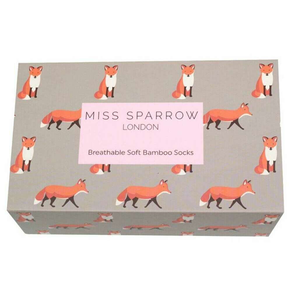 Miss Sparrow London Lot de 3 boîtes à chaussettes Foxes - Gris/Vert/Jaune