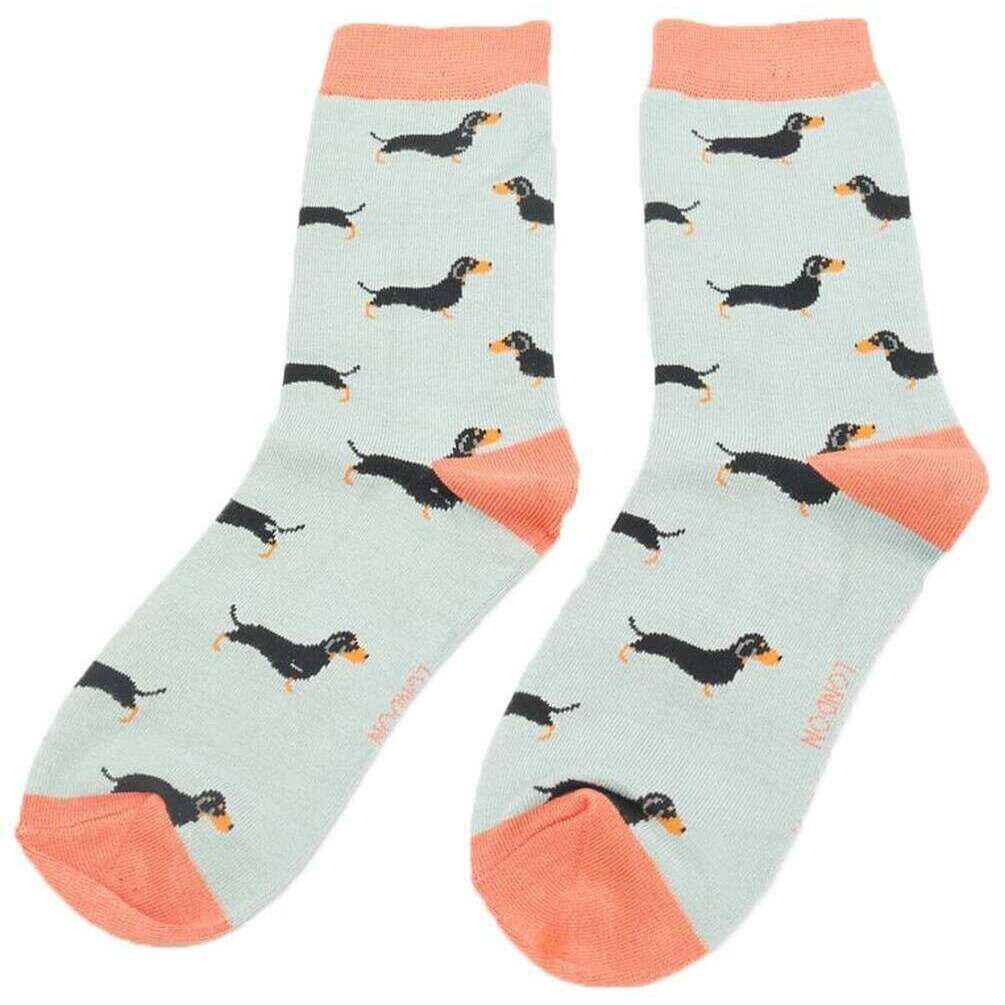 Miss Sparrow London Lot de 3 boîtes à chaussettes Little Sausage Dogs – Bleu/Vert/Jaune
