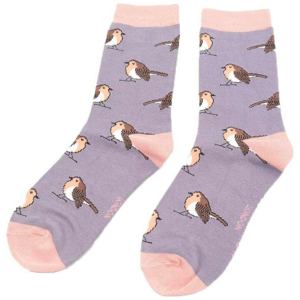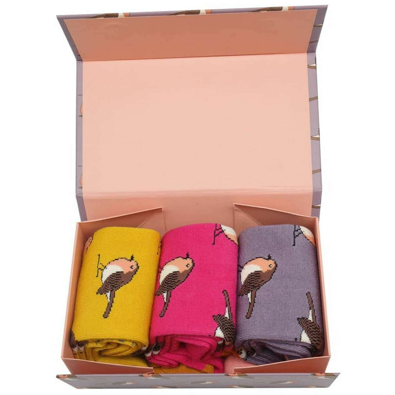 Miss Sparrow London Lot de 3 boîtes à chaussettes Robins - Rose/Jaune/Violet