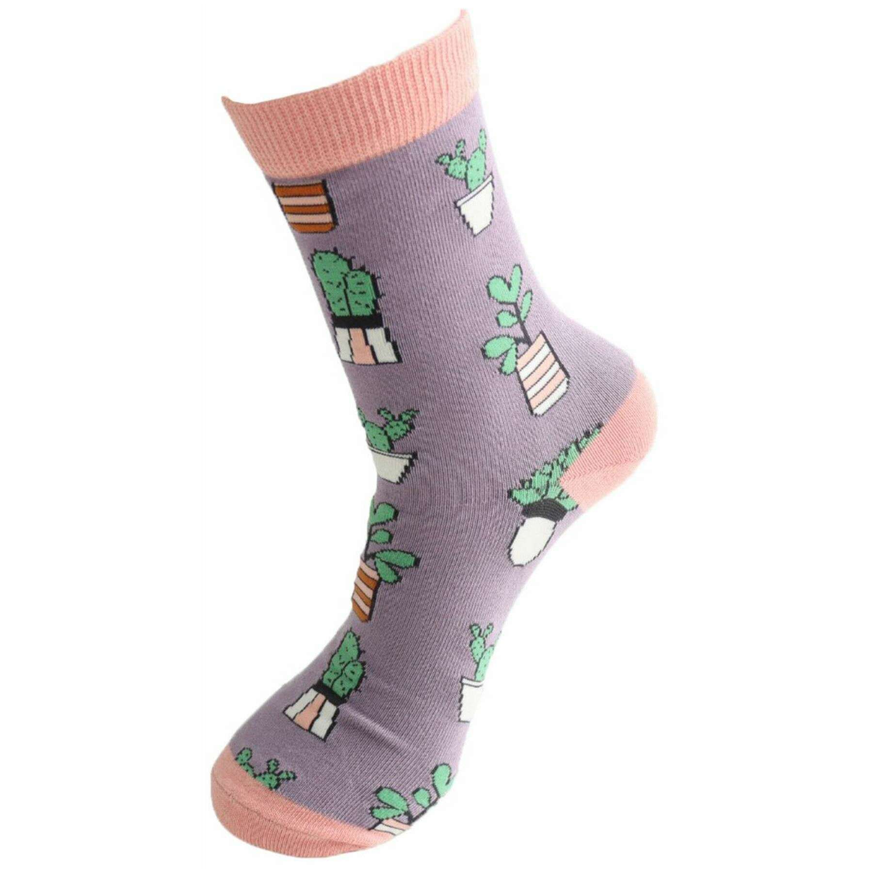 Miss Sparrow London Chaussettes en Bambou Petites Plantes Succulentes - Violet Lavande