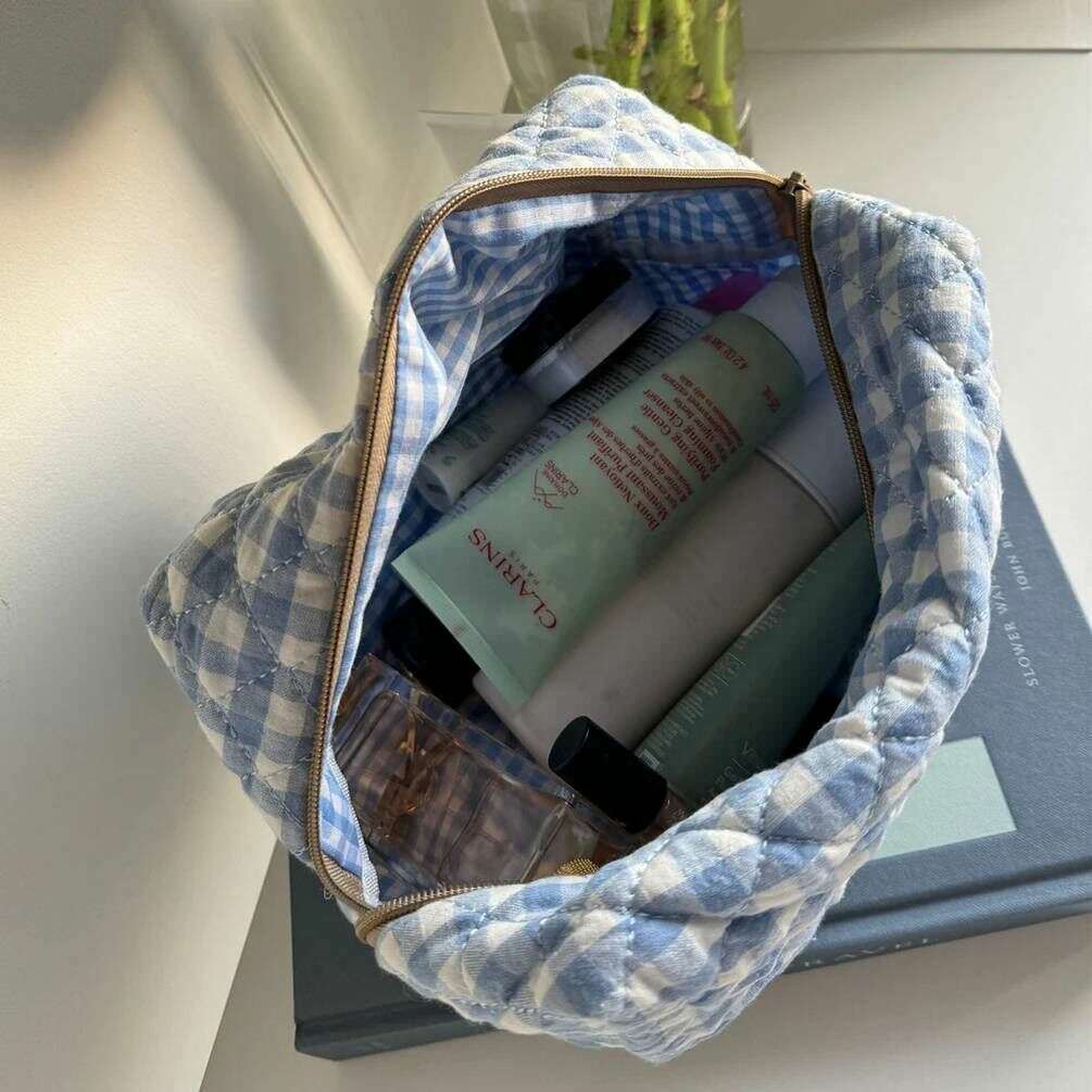 Cette grande trousse de maquillage azur pour femme de Moon Nude est de couleur bleu/blanc et est fabriquée à 100 % en coton. Il mesure 15 cm (hauteur) x 25 cm (largeur) x 15 cm (profondeur). Il est recommandé de laver à la main à l'eau froide avec un détergent doux, ou de laver à l'envers sur un cycle délicat. pour conserver ce sac en bon état. Tous les sacs sont livrés avec un emballage Moon Nude. La grande trousse de maquillage Moon Nude Azure - Bleu/Blanc est une nécessité absolue pour votre chambre ou votre sac de tous les jours. Cette trousse de maquillage est garantie de garder tous vos produits les plus utilisés ensemble et en sécurité, tout en étant élégante et chic avec son design matelassé fait à la main.