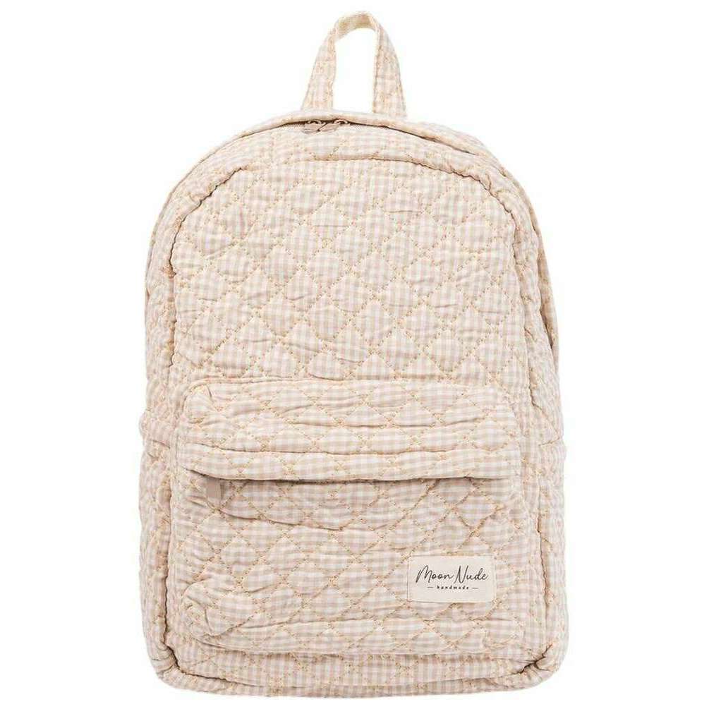 Fabriqué à 100% en coton, ce sac à dos beige pour femme du créateur Moon Nude. Il mesure 40 cm (hauteur) x 28 cm (largeur) x 13 cm (profondeur). Il est recommandé de laver à la main à l'eau froide avec un détergent doux, ou de laver à l'envers sur un cycle délicat. pour conserver ce sac en bon état. Tous les sacs sont livrés avec un emballage Moon Nude. Le sac à dos Moon Nude - Beige présente un magnifique design matelassé fait à la main. Parfait pour les déplacements, que ce soit pour le travail ou pour un usage quotidien. Ce sac a une poche extérieure avec fermeture éclair, parfaite pour tous les objets que vous pourriez avoir. L'intérieur est spacieux et offre un compartiment arrière pour votre ordinateur portable ou votre tablette.