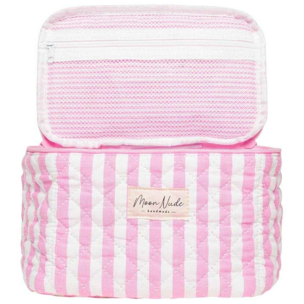 Utilisant du coton rose à 100 %, ce vanity barbie de Moon Nude est parfait pour les femmes et un incontournable. Il mesure 16 cm (hauteur) x 22 cm (largeur) x 14 cm (profondeur). Il est recommandé de laver à la main à l'eau froide avec un détergent doux, ou de laver à l'envers sur un cycle délicat. pour conserver ce sac en bon état. Tous les sacs sont livrés avec un emballage Moon Nude. Le sac de toilette Moon Nude Barbie - Rose/Blanc est une nécessité absolue pour les voyages ou pour un usage quotidien. Ce sac de vanité est garanti pour garder tout votre maquillage ou vos soins de la peau au même endroit, tout en étant élégant et à la mode avec son design matelassé fait à la main.