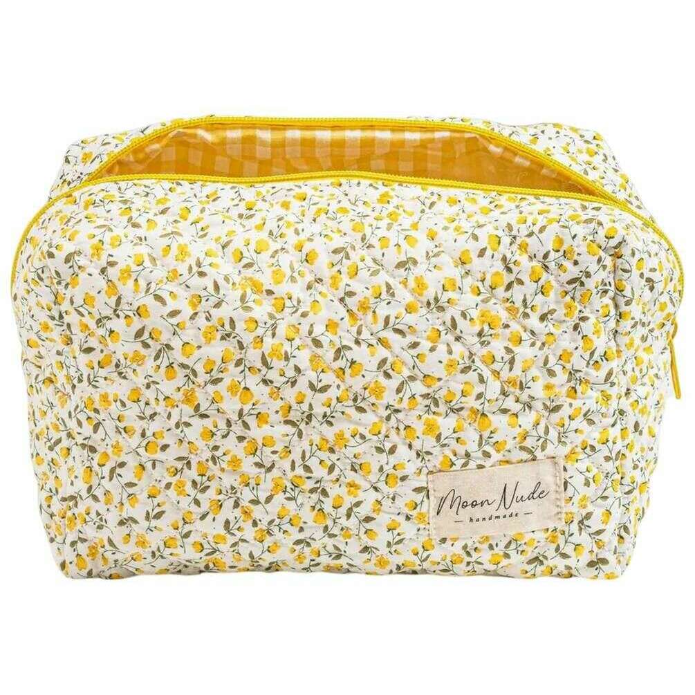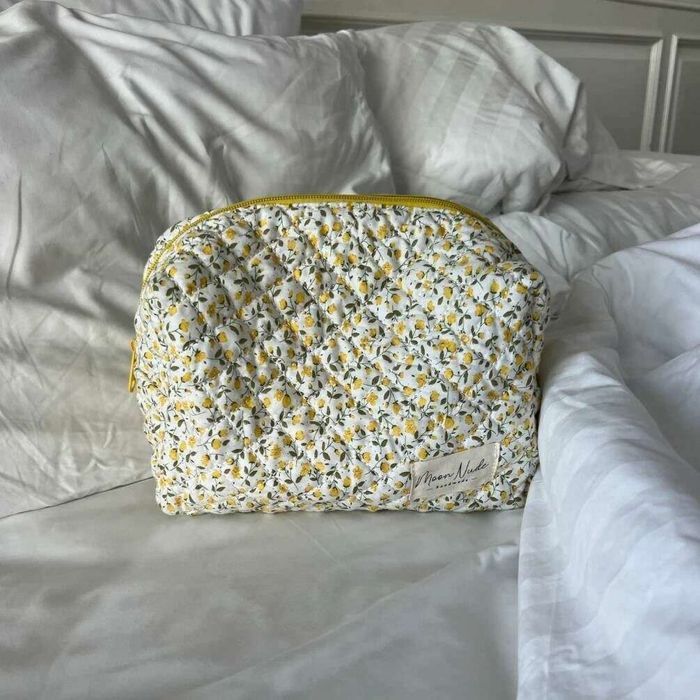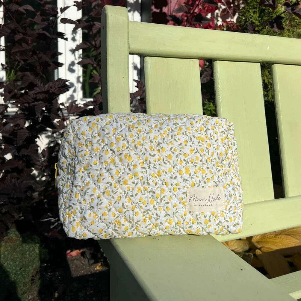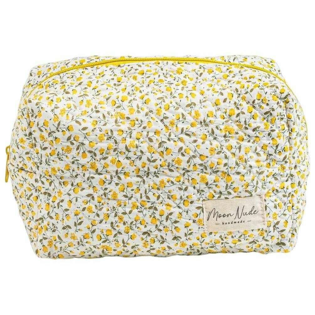 La créatrice Moon Nude vous propose ce sac pour femme 100% coton dans les tons blanc/jaune/beige. Il mesure 15 cm (hauteur) x 25 cm (largeur) x 15 cm (profondeur). Il est recommandé de laver à la main à l'eau froide avec un détergent doux, ou de laver à l'envers sur un cycle délicat. pour conserver ce sac en bon état. Tous les sacs sont livrés avec un emballage Moon Nude. La grande trousse de maquillage Moon Nude Buttercup - Blanc/Jaune/Beige est une nécessité absolue pour votre chambre ou votre sac de tous les jours. Cette trousse de maquillage est garantie de garder tous vos produits les plus utilisés ensemble et en sécurité, tout en étant élégante et chic avec son design matelassé fait à la main.