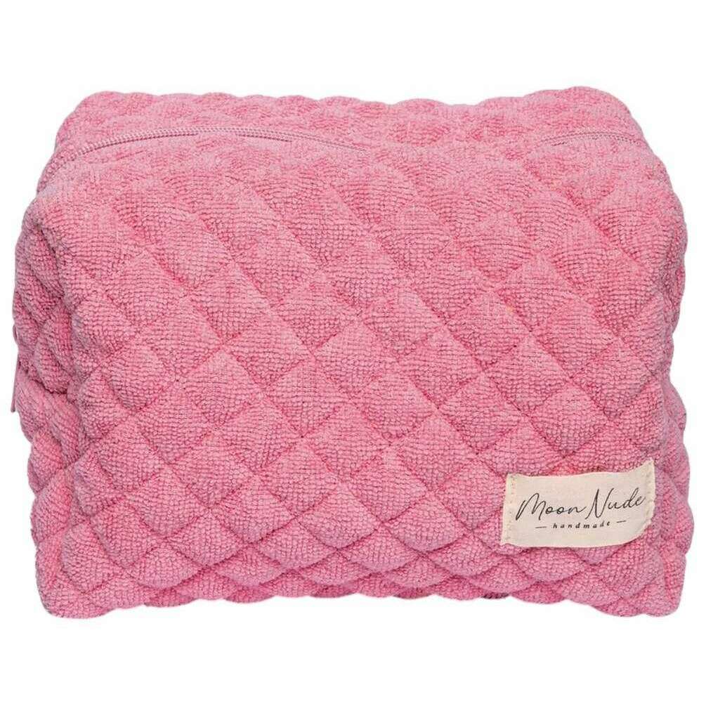Cette grande trousse de maquillage Candy pour femme est confectionnée par la marque Moon Nude dans un coloris rose et est composée à 100% de coton. Il mesure 15 cm (hauteur) x 25 cm (largeur) x 15 cm (profondeur). Il est recommandé de laver à la main à l'eau froide avec un détergent doux, ou de laver à l'envers sur un cycle délicat. pour conserver ce sac en bon état. Tous les sacs sont livrés avec un emballage Moon Nude. La grande trousse de maquillage Moon Nude Candy - Rose est une nécessité absolue pour votre chambre ou votre sac de tous les jours. Cette trousse de maquillage est garantie de garder tous vos produits les plus utilisés ensemble et en sécurité, tout en étant élégante et chic avec son design matelassé fait à la main.