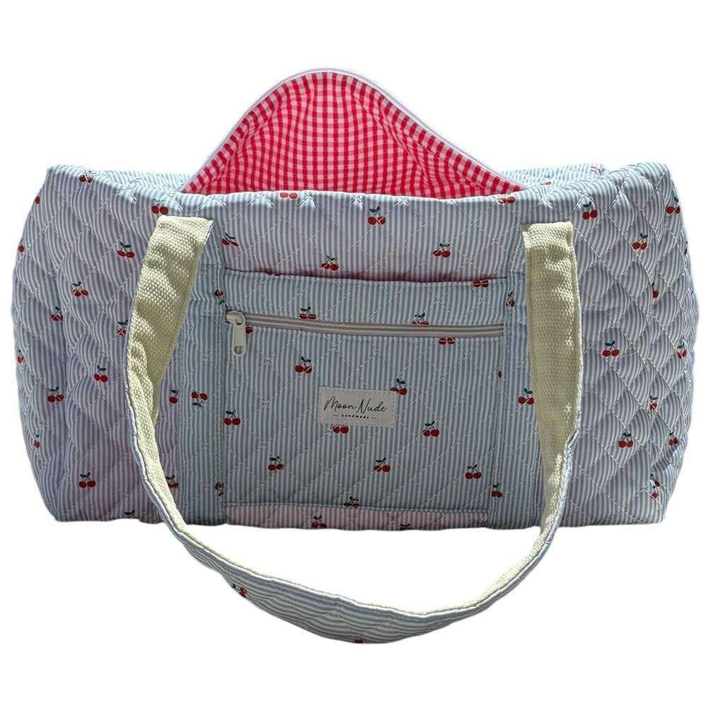 Ce grand sac polochon Moon Nude bleu/blanc/rouge cerise est parfait pour les femmes, il est également fabriqué à 100 % en coton. Il mesure 30 cm (hauteur) x 50 cm (largeur) x 28 cm (profondeur). Il est recommandé de laver à la main à l'eau froide avec un détergent doux, ou de laver à l'envers sur un cycle délicat. pour conserver ce sac en bon état. Tous les sacs sont livrés avec un emballage Moon Nude. Le grand sac de sport Moon Nude Cherry - Bleu/Blanc/Rouge présente un magnifique design matelassé fait à la main. Ce sac comporte une poche extérieure zippée, un intérieur spacieux et deux grandes poignées, parfait pour les escapades du week-end ou pour transporter de nombreuses affaires.