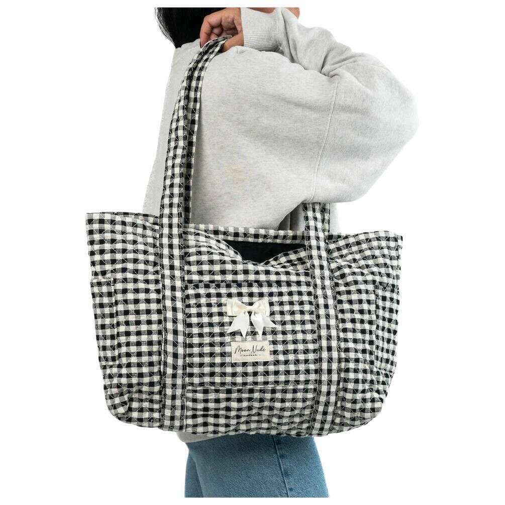 Parfait pour les femmes, ce sac fourre-tout classique noir/blanc Moon Nude est également fabriqué à 100 % en coton. Il mesure 30 cm (hauteur) x 42 cm (largeur) x 12 cm (profondeur). Il est recommandé de laver à la main à l'eau froide avec un détergent doux, ou de laver à l'envers sur un cycle délicat. pour conserver ce sac en bon état. Tous les sacs sont livrés avec un emballage Moon Nude. Le sac fourre-tout Moon Nude Classic - Noir/Blanc présente un magnifique design matelassé fait à la main. Parfait pour les déplacements, que ce soit pour voyager ou pour un usage quotidien. Ce sac fourre-tout est doté d'une fermeture zippée pour plus de sécurité, de longues bretelles pour plus de confort et d'un intérieur spacieux pour toutes vos affaires.
