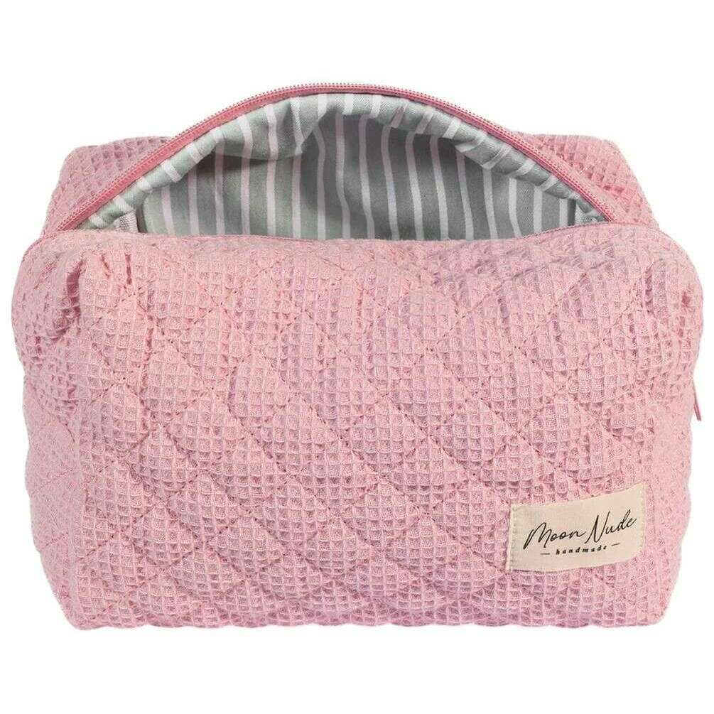 Cette grande trousse de maquillage pour femme Jam est confectionnée par la marque Moon Nude dans un coloris rose et est composée à 100% de coton. Il mesure 15 cm (hauteur) x 25 cm (largeur) x 15 cm (profondeur). Il est recommandé de laver à la main à l'eau froide avec un détergent doux, ou de laver à l'envers sur un cycle délicat. pour conserver ce sac en bon état. Tous les sacs sont livrés avec un emballage Moon Nude. La grande trousse de maquillage Moon Nude Jam - Rose/Vert est une nécessité absolue pour votre chambre ou votre sac de tous les jours. Cette trousse de maquillage est garantie de garder tous vos produits les plus utilisés ensemble et en sécurité, tout en étant élégante et chic avec son design matelassé fait à la main.