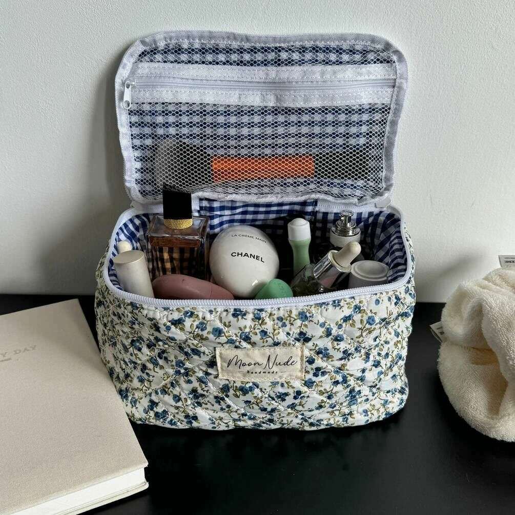 Ce vanity printanier pour femmes bien conçu de Moon Nude est disponible dans une couleur blanc/bleu/vert et est fabriqué à 100 % en coton. Il mesure 16 cm (hauteur) x 22 cm (largeur) x 14 cm (profondeur). Il est recommandé de laver à la main à l'eau froide avec un détergent doux, ou de laver à l'envers sur un cycle délicat. pour conserver ce sac en bon état. Tous les sacs sont livrés avec un emballage Moon Nude. Le Vanity Bag Moon Nude Spring - Blanc/Bleu/Vert est une nécessité absolue pour les voyages ou pour un usage quotidien. Ce sac de vanité est garanti pour garder tout votre maquillage ou vos soins de la peau au même endroit, tout en étant élégant et à la mode avec son design matelassé fait à la main.