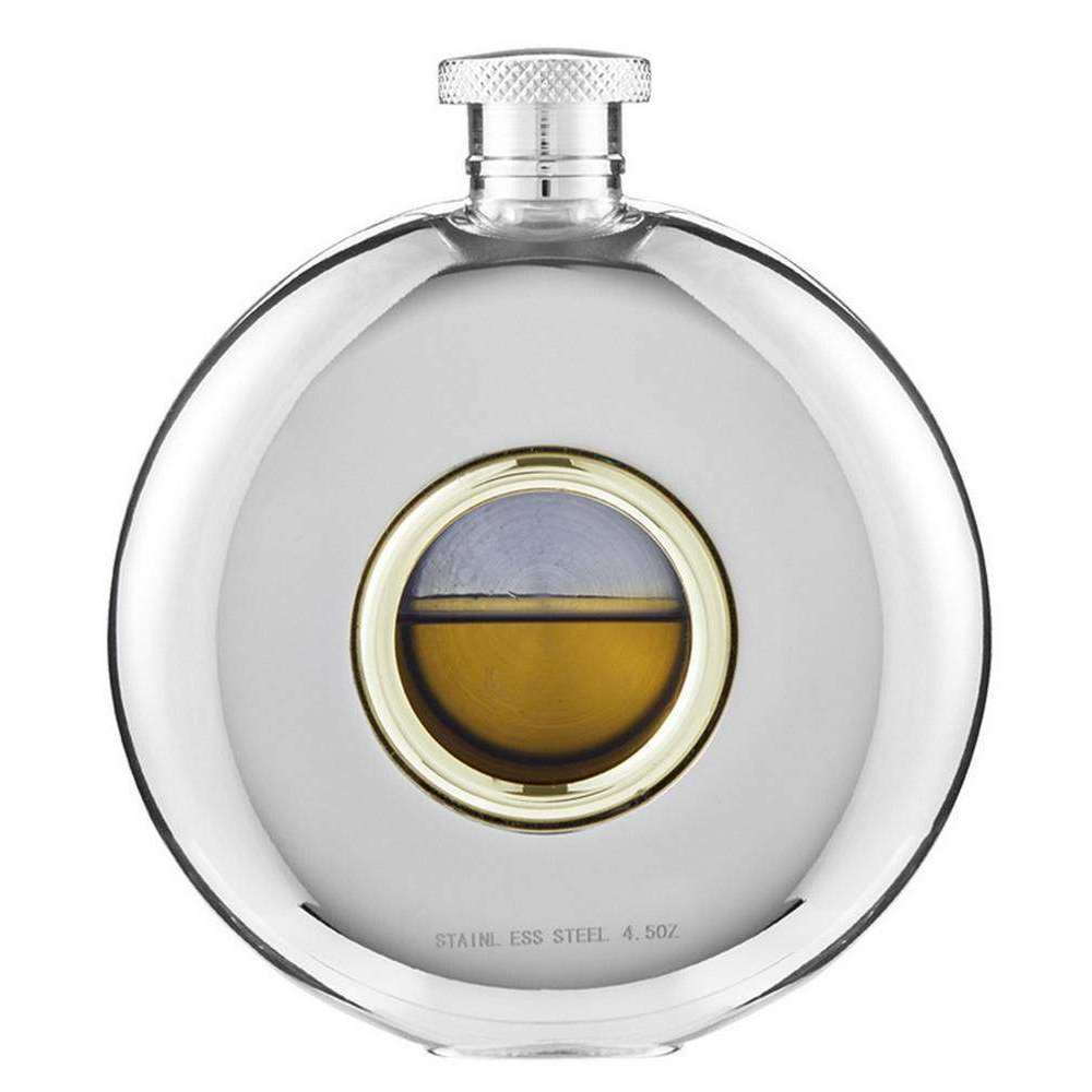 This men's 4oz celtic porthole hip flask has been made from stainless steel, featured in a silver colour and is from the brand Orton West. It measures 8.8cm(diamater) x 2.7cm(width). All the hip flasks come complete in a presentation box. The Orton West 4oz Celtic Porthole Hip Flask - Silver gives off a smooth and sleek effect with its shiny polished finish. This hip flask features a unique design which will be guaranteed not to disappoint. The front of the flask has been manufactured with a small Celtic design, and on the back is a small see through section to see how much or how little you have left. Make this a flawless gift to any stylish gentleman.