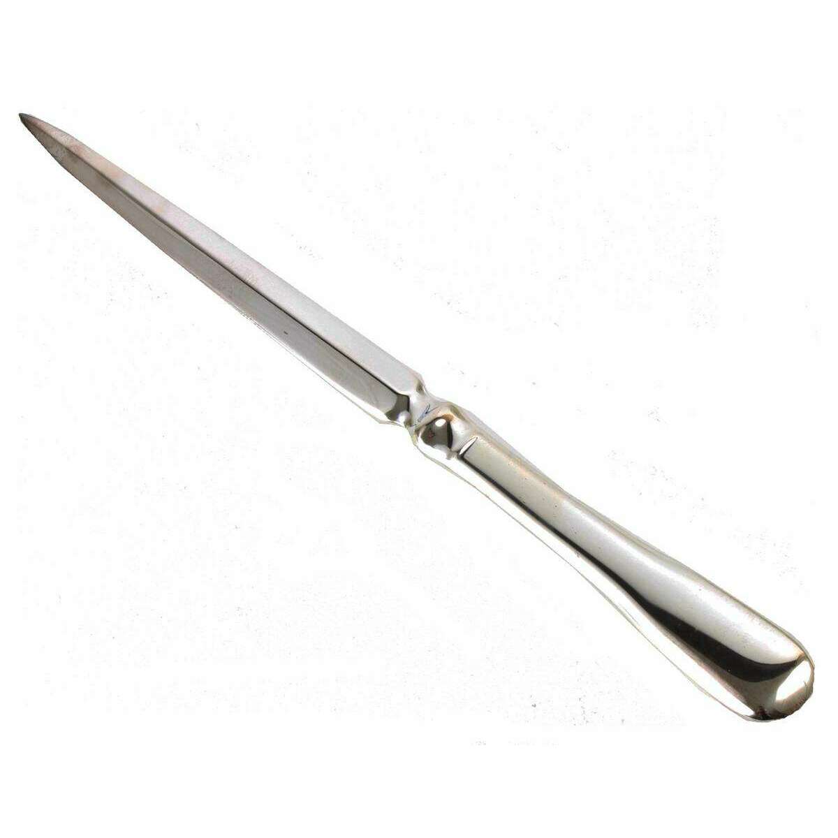 Présenter un design simpliste et élégant Cet ouvreur d'Orton West offre un style subtil et une qualité formidable. Merveilleusement fabriquée à partir d'argent électro plaqué, cette pièce offre une durabilité et a été magistralement fabriquée aux normes les plus élevées. Il présente une marque de marque sur sa poignée et présente une finition glorieuse brillante. Assurez-vous de faire un ajout étonnant à votre collection, cet ouvre-lettre est un accessoire essentiel. Un choix de cadeau idéal, il est livré dans une boîte de présentation élégante.