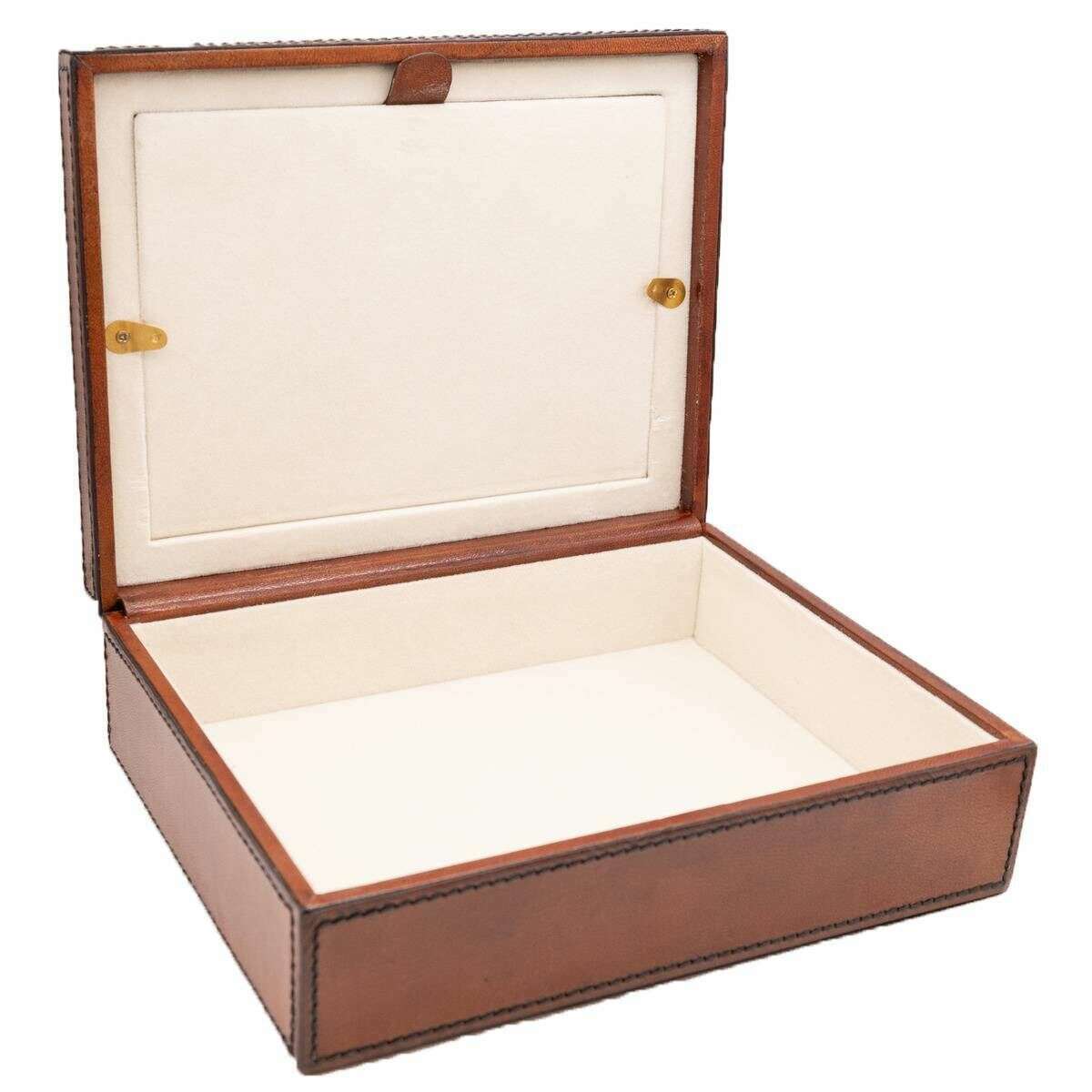 Parfait pour les hommes ou les femmes se trouve cette boîte à bijoux photo en cuir Orton West Brown, il est également fabriqué à partir de cuir 100%. Il mesure 7 cm (hauteur) x 22 cm (largeur) x 12 cm (profondeur). Toutes les boîtes à bijoux sont complètes avec Orton West Packaging. La boîte à bijoux photo en cuir Orton West en cuir - Brown sera un excellent ajout pour stocker sur votre coiffeuse. C'est idéal pour garder vos articles tous ensemble et à l'abri des dommages tandis que la section ouverte ne limite pas les articles de plus grande taille du raccord. Avec un cadre photo intégré dans le couvercle combine la décoration et le charme avec le stockage, vous permettant d'échanger des photos chaque fois que vous voulez un look différent.