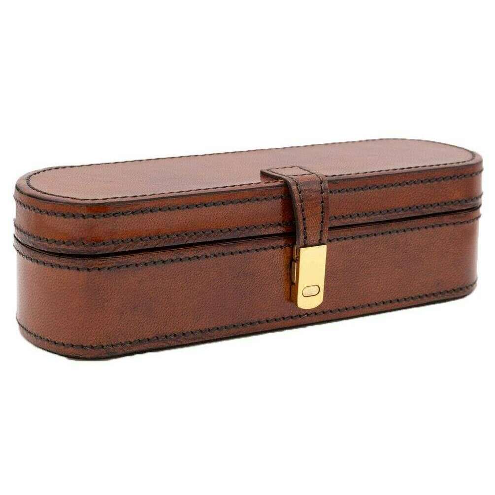 Orton West Leather Routed Corner Boîte de bijoux - marron