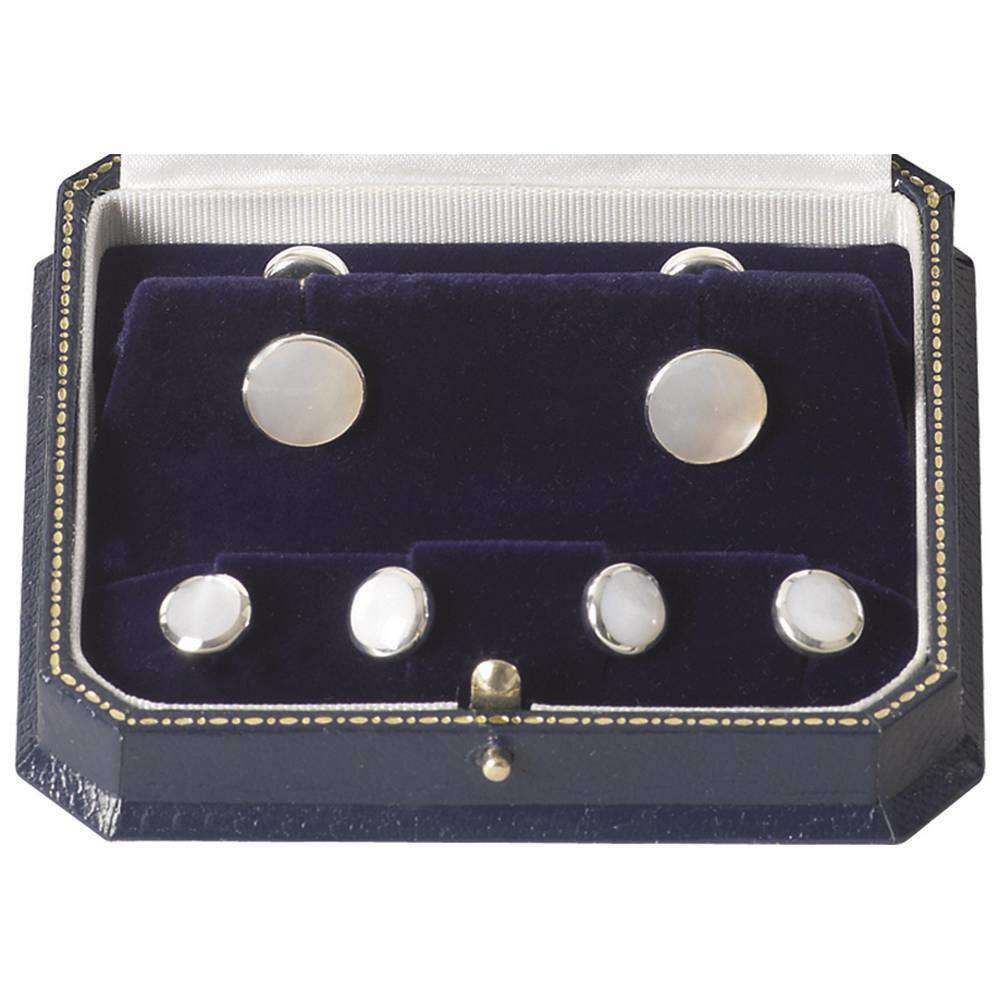 Équipez-vous pour ces occasions spéciales de cet ensemble de boutons de manchette et de poteaux de chemise. Présenté par Orton West, la qualité est garantie après avoir été fabriquée à partir de l'argent fin et avec une merveilleuse mère blanc de perle. Cet ensemble assorti est parfait pour toutes les occasions ajoutant une touche de luxe à votre tenue. À venir dans un boîtier de présentation élégant, cet ensemble ferait un choix fantastique de cadeau pour tout gentleman moderne.