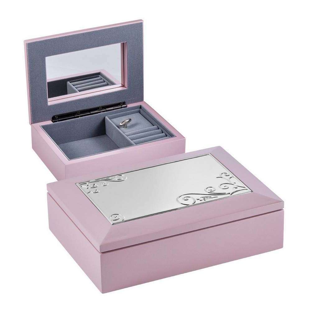 Cette musique Boîte à bijoux pour les femmes est façonné par la marque Orton West dans une couleur rose et est fabriqué à partir de laiton plaqué. Il mesure 12,5 cm (hauteur) x 17,5 cm (largeur) x 5 cm (profondeur). Toutes les boîtes à bijoux sont complètes dans une boîte de présentation. La boîte à bijoux Music Orton West - Pink / Silver ferait l'ajout parfait à n'importe quelle maison. Cette douce boîte vous permet d'écouter de la musique et de garder ces précieux articles en sécurité en raison de ses multiples porte-anneaux et de son grand compartiment. Terminé avec un miroir sur le dessus, avec des détails surélevés pour une conception globale sophistiquée.