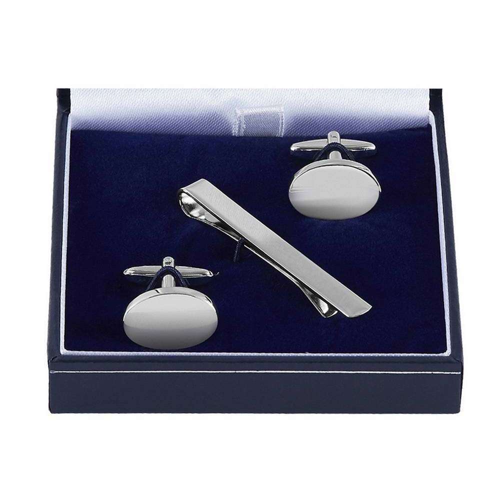 Orton West Plain Cuffers et Tie Bar Set - Silver