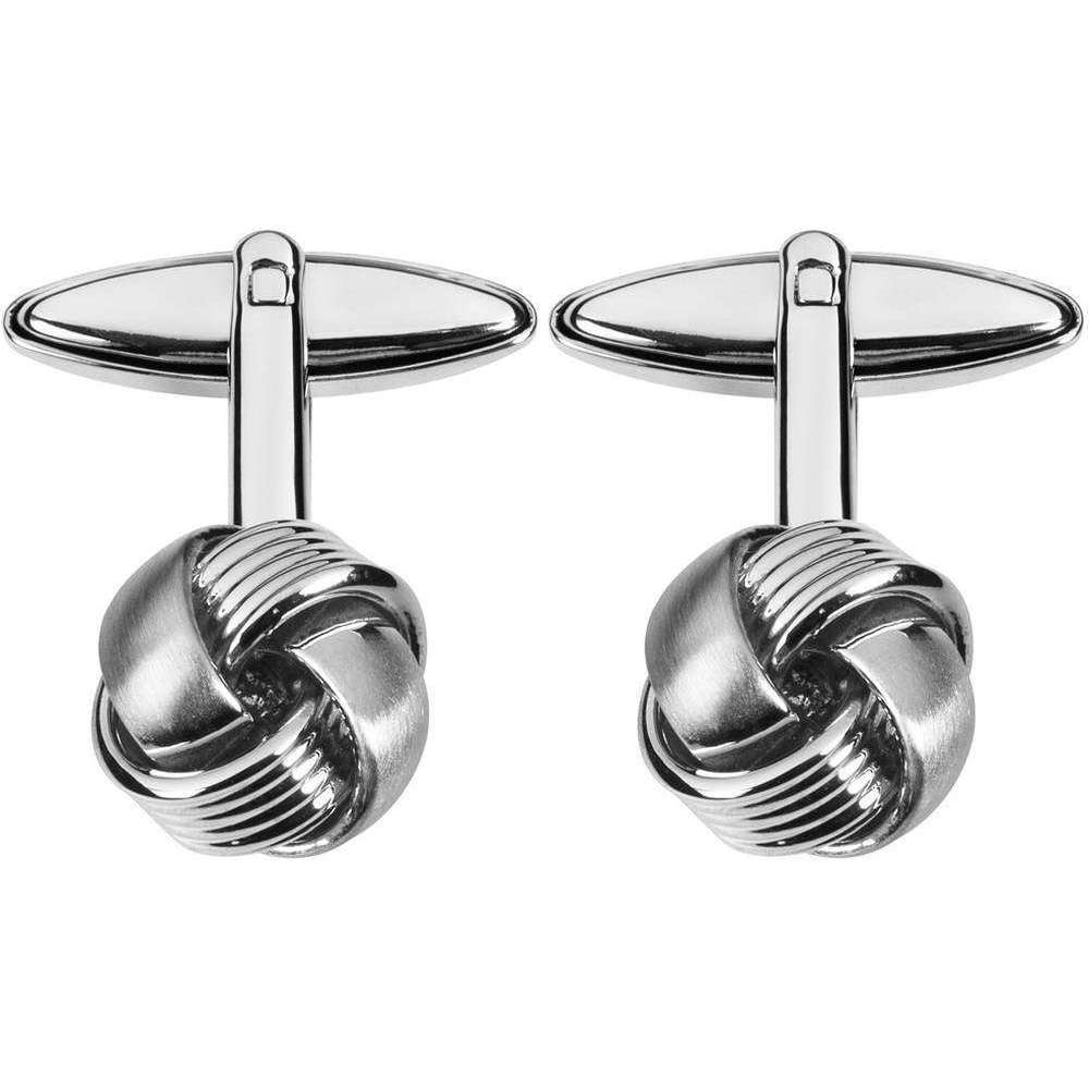 Avec un design qui présente un nœud glorieux qui a été fini avec un effet brossé entrelacé avec un motif de bande gravé, ces boutons de manchette sont là pour impressionner. En plus de regarder la pièce, ils offrent également une durabilité maximale et ont été fabriqués de la plaque de rhodium à la plus haute qualité. Pressé par Orton West, ils sont un must pour votre collection de boutons de manchette en veillant à ajouter une classe et une élégance à toute tenue gentlemans. Ajusté d'un dos en T pivotant, ils peuvent être insérés et retirés sans effort de votre manchette, leur donnant cette touche de flair pour ces occasions spéciales.