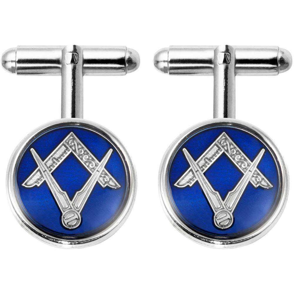 Orton West Rhodium plaqué Masonic Round Cuffushs - Silver / Royal Blue