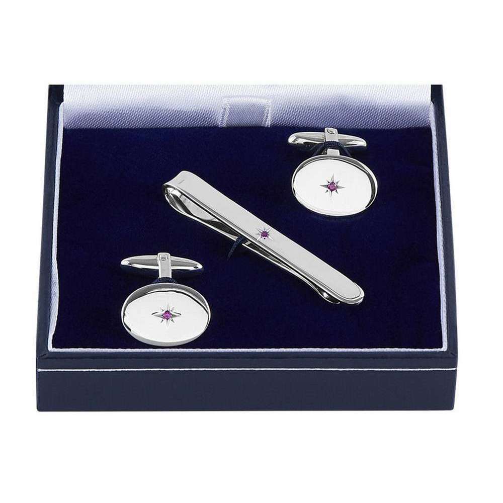 Orton West Ruby Set Rhodium Cuffers et Tie Bar Set - Silver