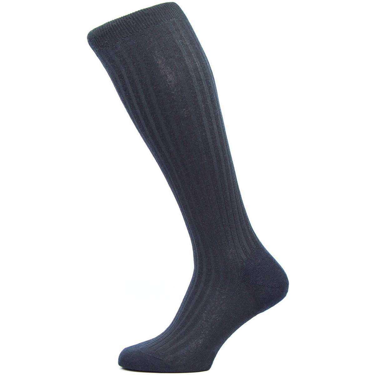 Pantherella Laburnum Rib sur les chaussettes en laine mérinos du veau - Marine - Marine