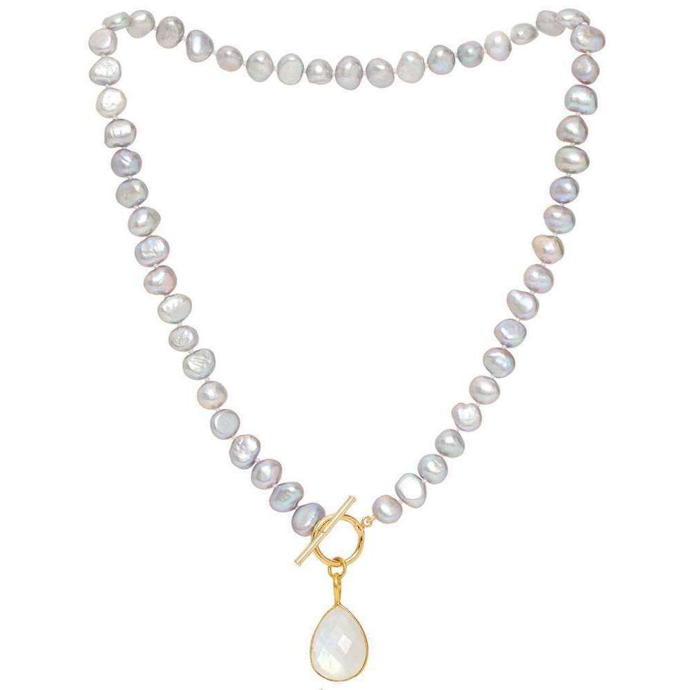 Perles de l'Orient Clara Collier de goutte de pierre de lune de la lune de lune de perle - gris / blanc
