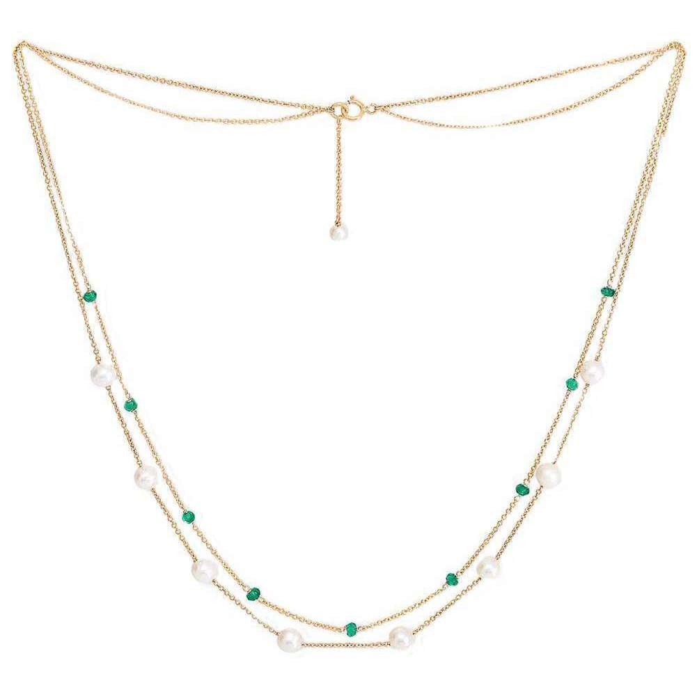 Perles de l'Orient Fine double chaîne en eau douce perle et collier émeraude - vert / blanc / or
