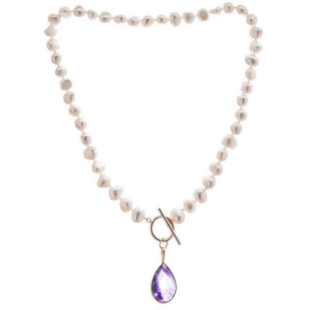 • Perle d'eau douce, pierre précieuse d'améthyste et or 18 kt