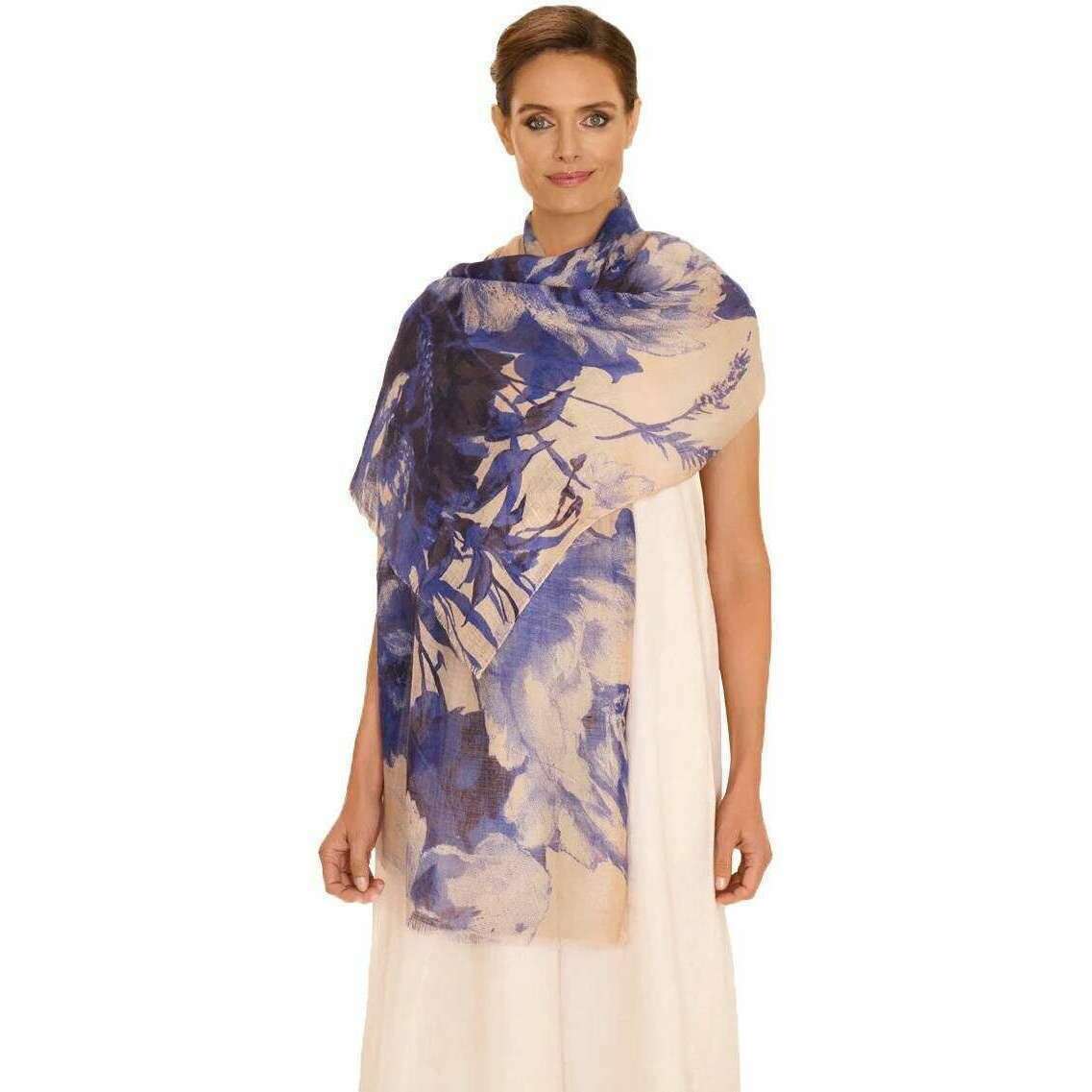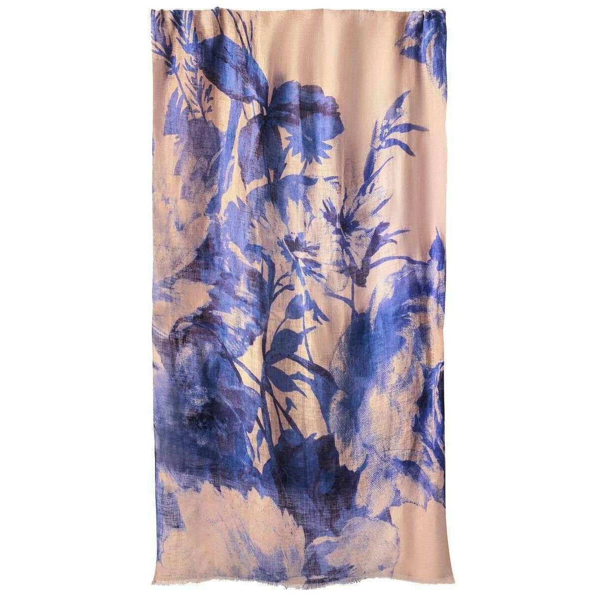 Powder China Bloom Cotton Linen Écharpe - bleu