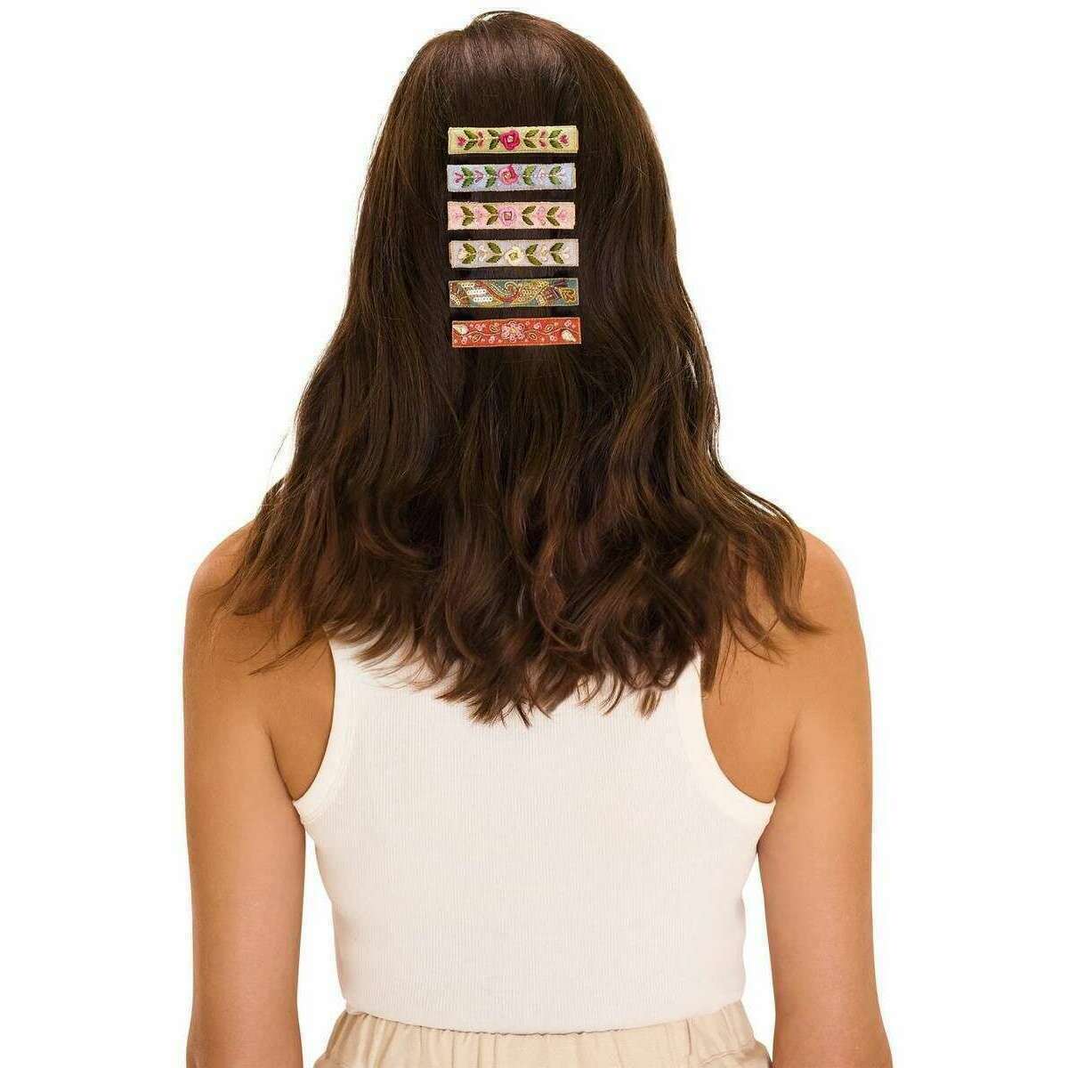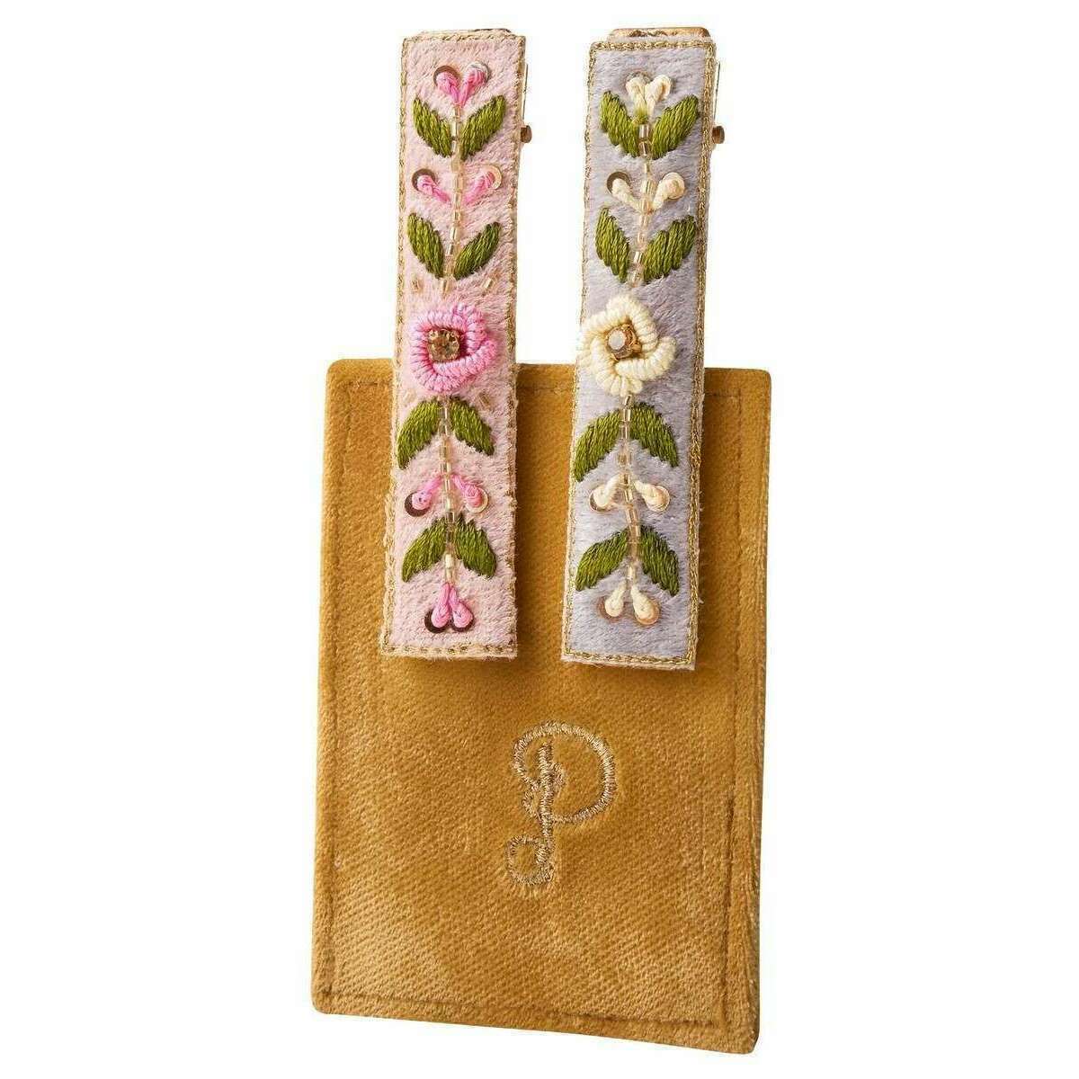 Powder Barres de cheveux à floraux brodés - Pétal rose / poudre bleu