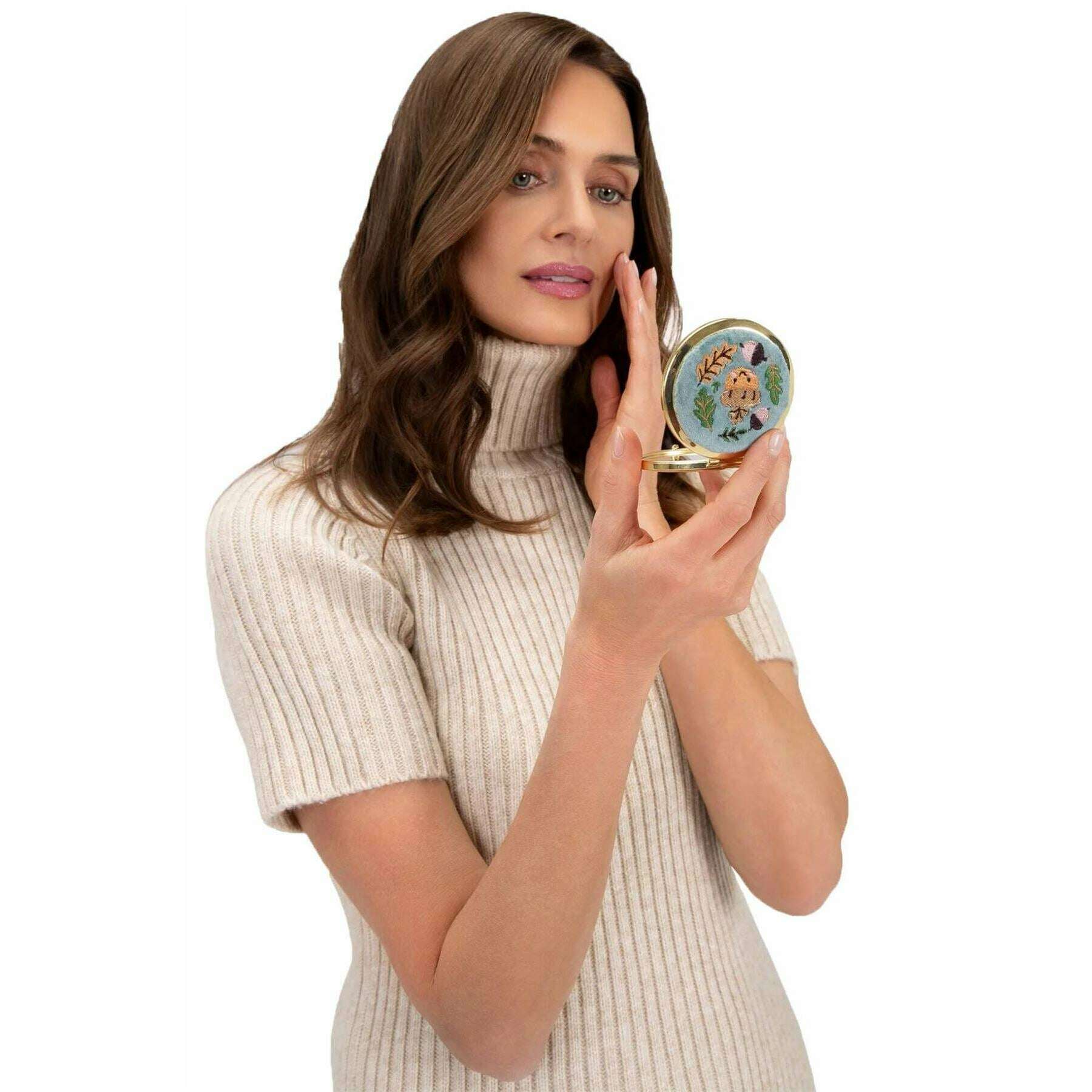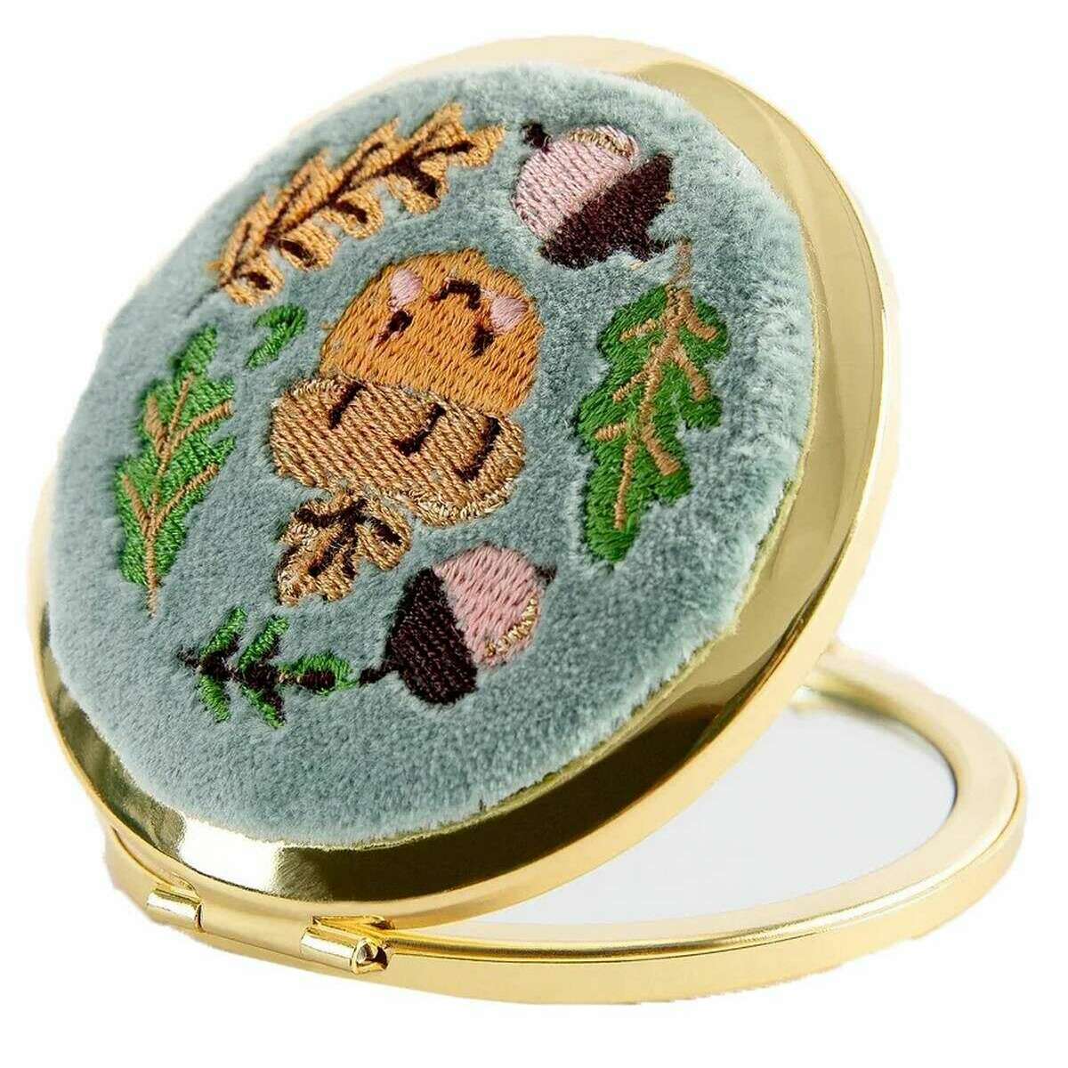 Powder Broidered Happy Acorn Compact Mirror - Bleu à glace