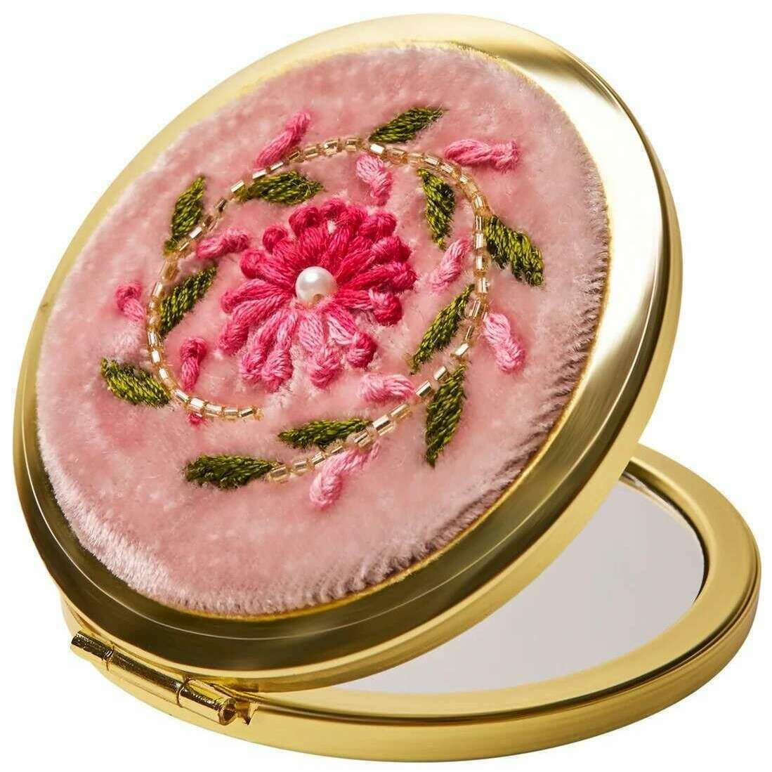 La poudre de concepteur vous a apporté ce velours 100% polyester pour femmes compacte à base de tons roses. Tous les compacts sont complets dans l'emballage de poudre. Le miroir des pétales brodés en poudre - le rose est un must pour votre sac à main, agissant comme un accessoire essentiel d'une femme sans laquelle vous ne pourrez pas sortir. Compact et magnifiquement embelli de détails brodés complexes, ce miroir ne reflète pas seulement la beauté à l'intérieur mais a l'air magnifique à l'extérieur aussi.