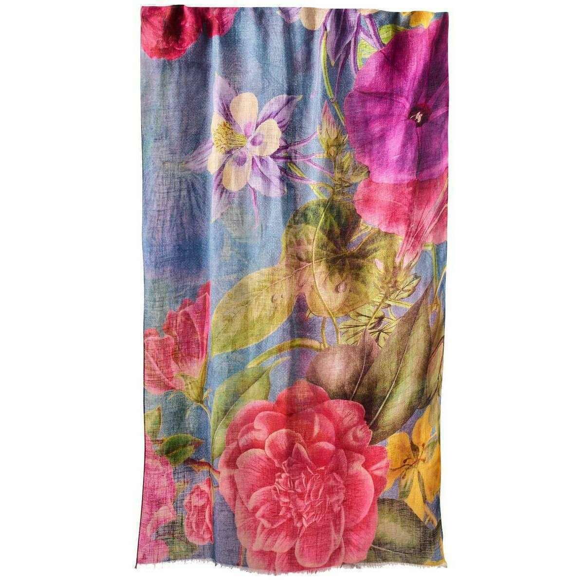 Étude florale en poudre Écharpe en lin en coton - Denim bleu