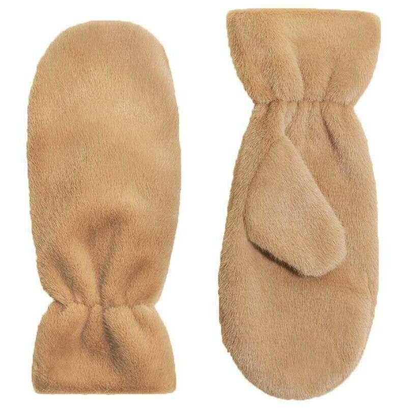 Powder Fluffy Teddy Mittens - Taupe Beige