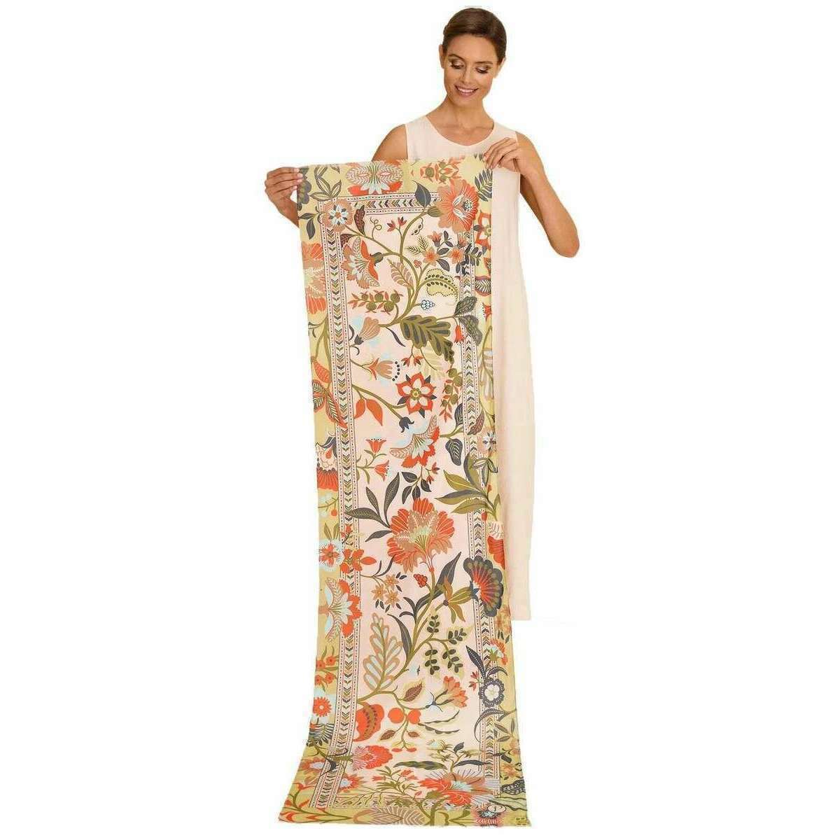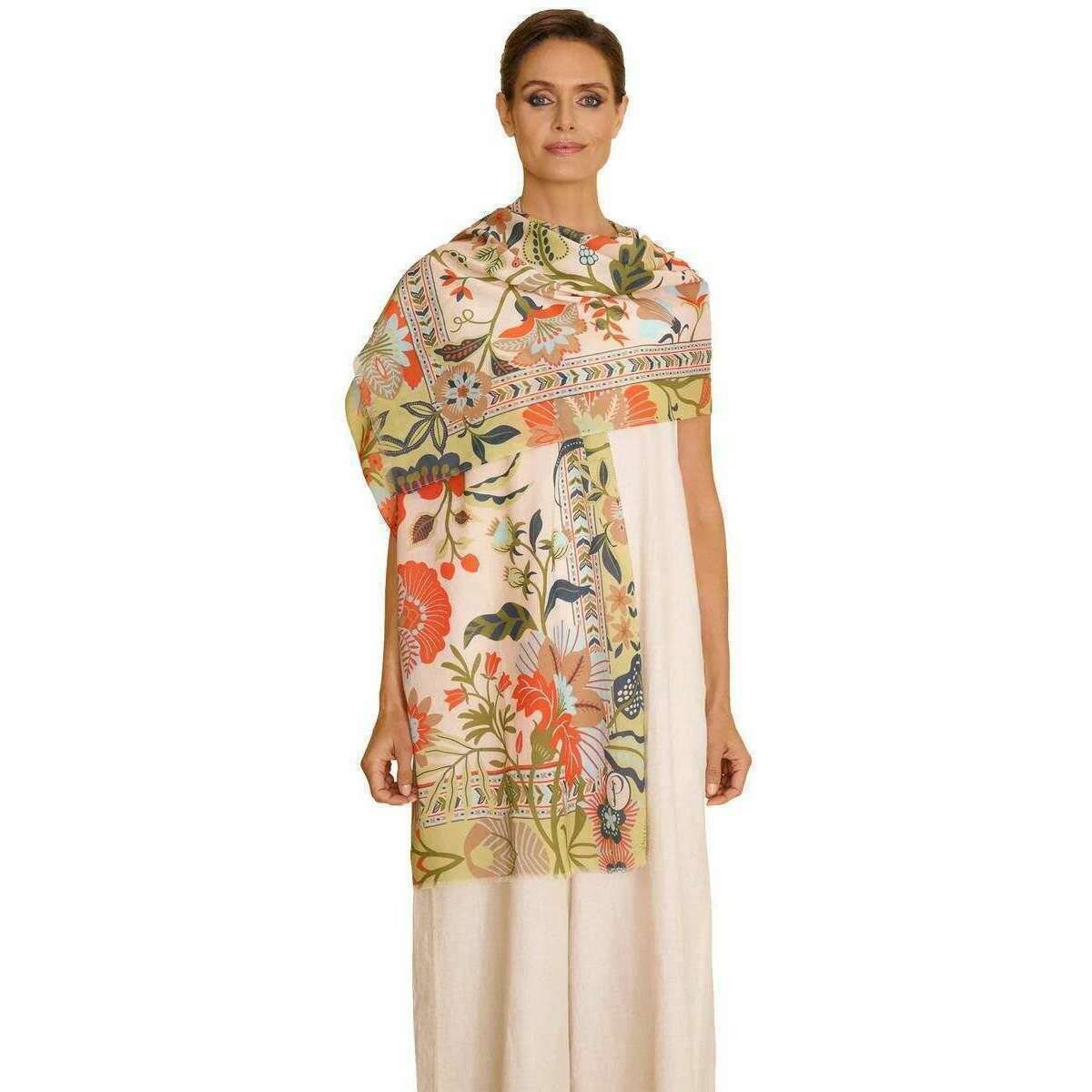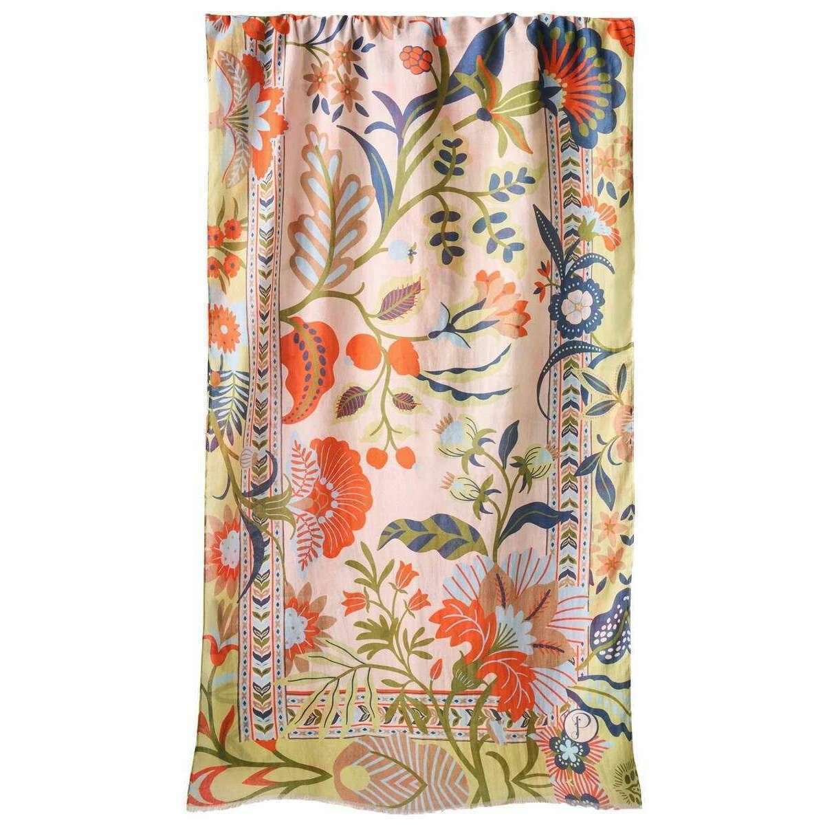 Powder Folk Floral Cotton Scarf - Coconut blanc / orange
