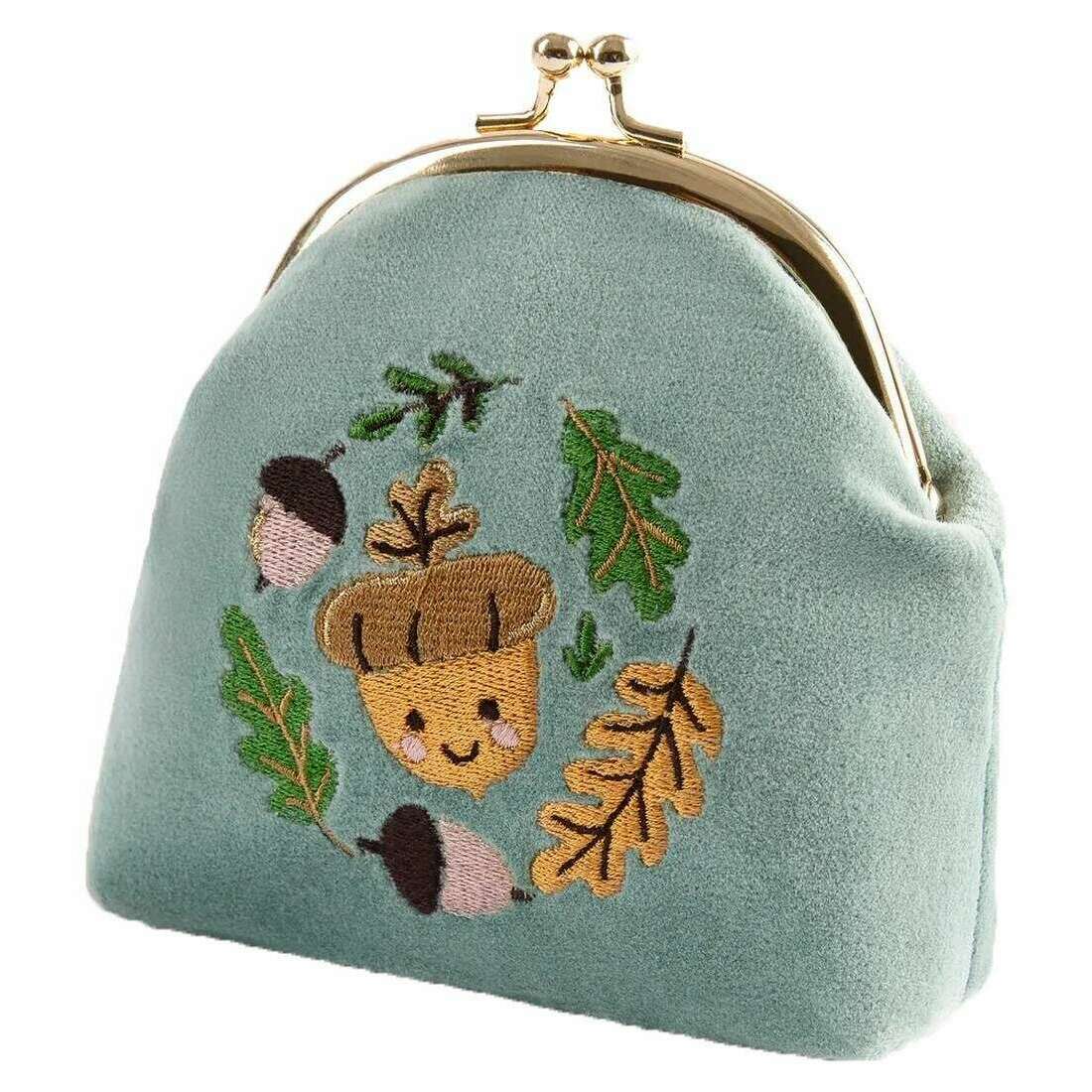 Powder Happy Acorn Velvet Coin Purse - Bleu à glace