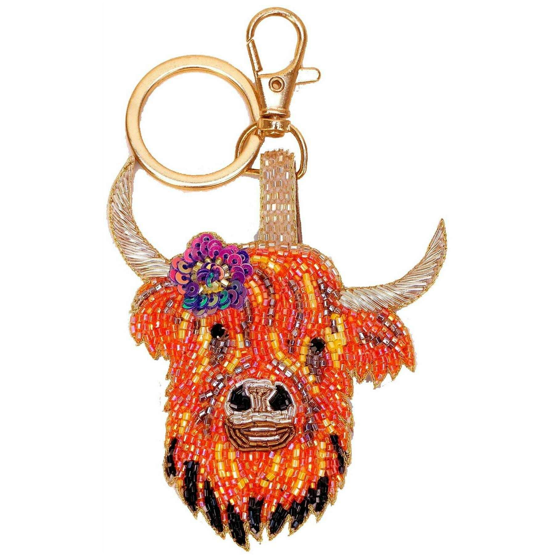 Porte-clés en perles de vache des Highlands en poudre - Crème/Orange/Noir
