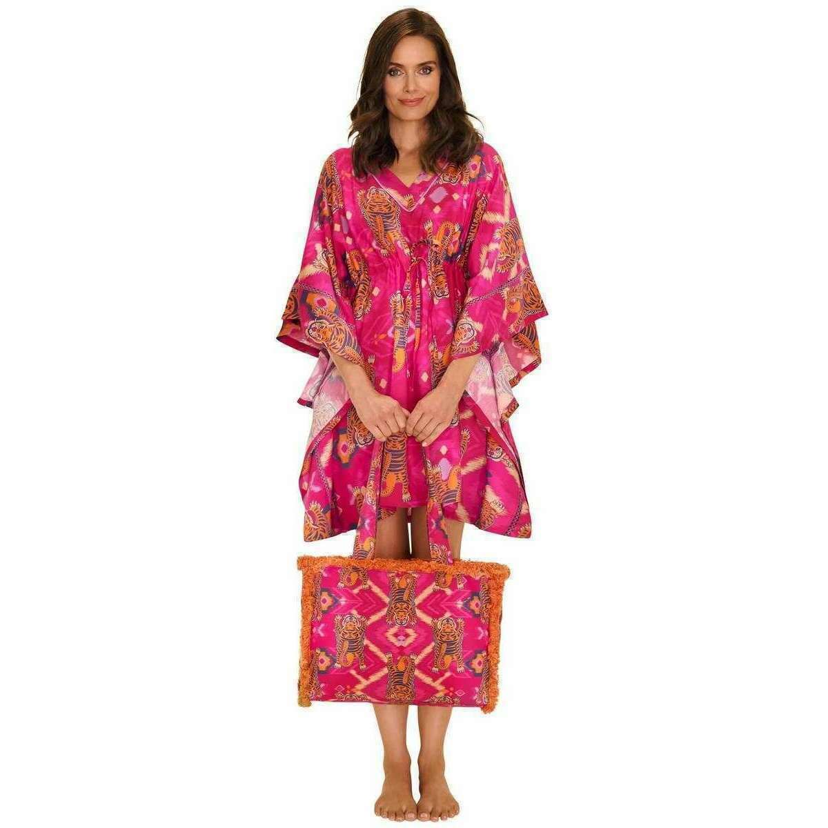 Powder ikat tigres bac à frange bac - fuchsia rose