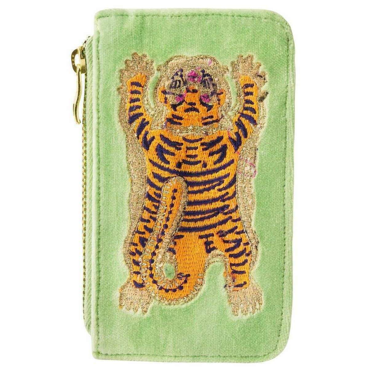 Powner Ikat Tigers Velvet Card Holder - Green Mint
