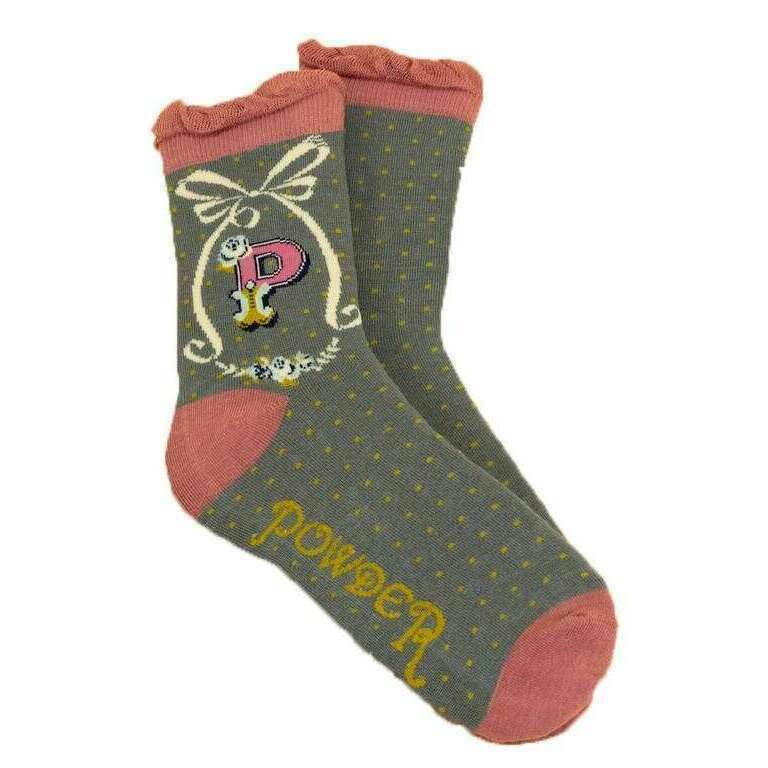 Lettre de poudre P chaussettes de cheville - gris au charbon de bois