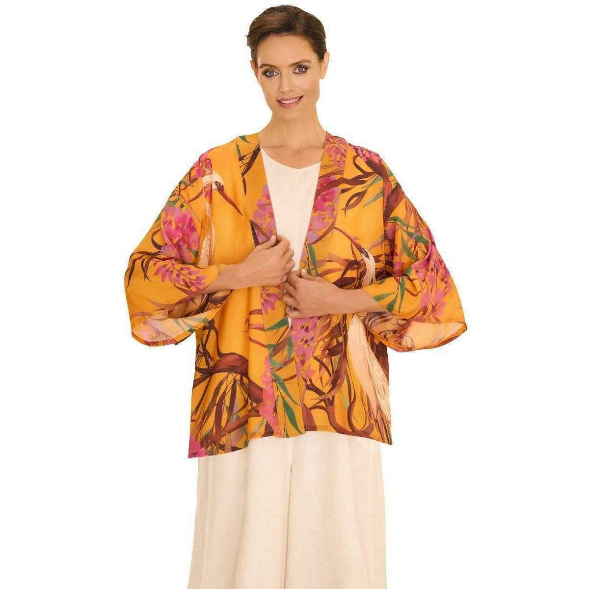 Powder Oriental Crane Kimono Veste - Ochère Orange
