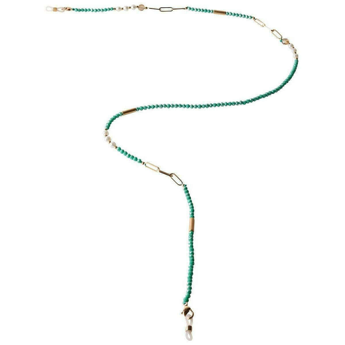 Chaîne de lunettes de soleil perlé en poudre - turquoise / or