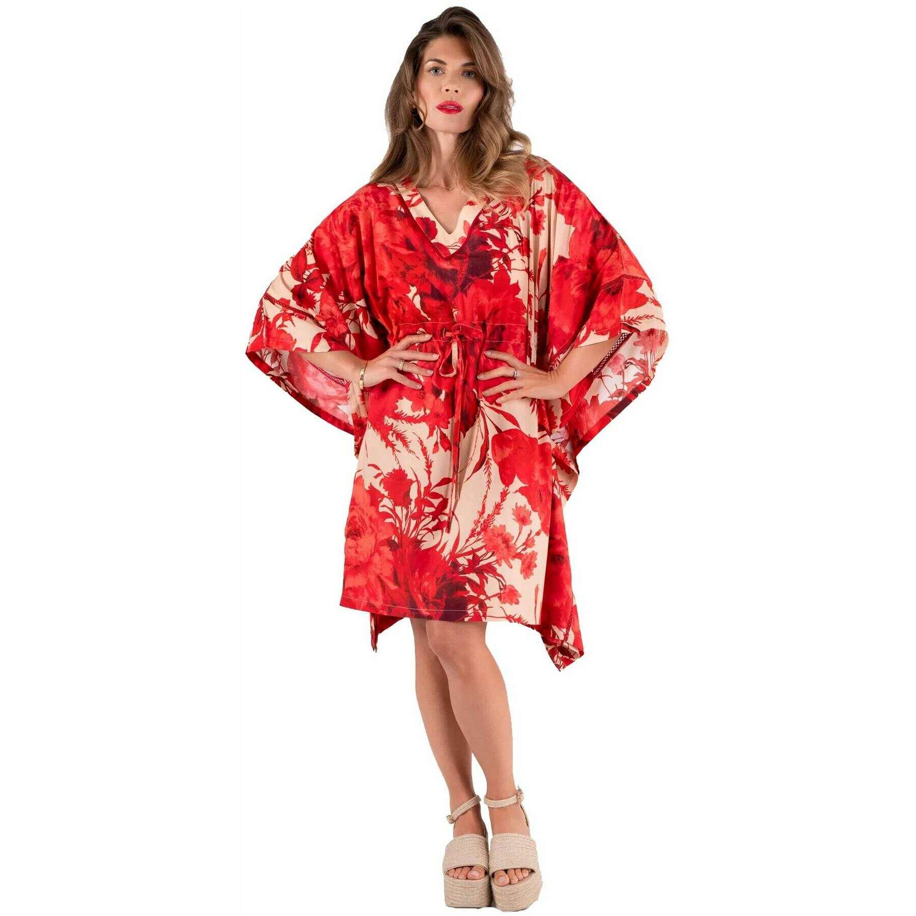 Cache-maillot de plage Powder Rouge Blooms - Rouge/Beige