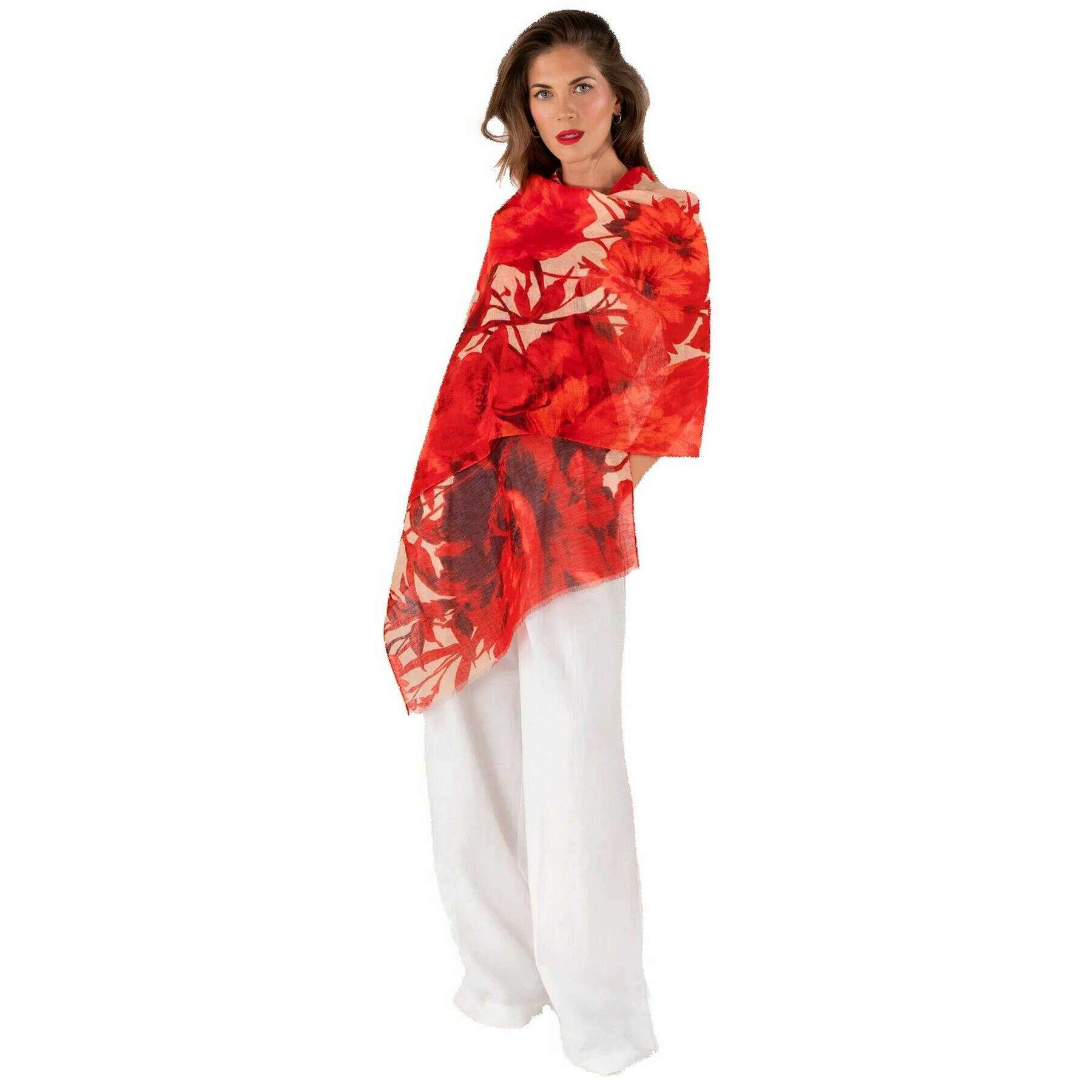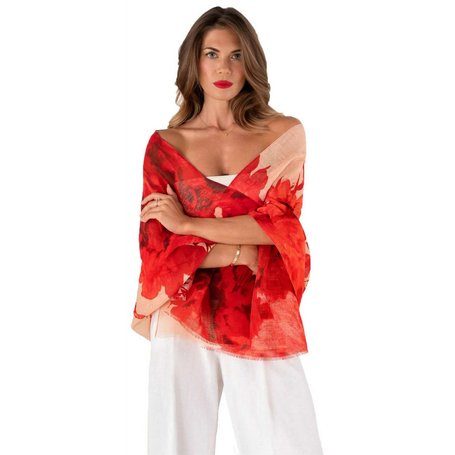 Écharpe en coton et lin Powder Rouge Blooms - Rouge/Beige