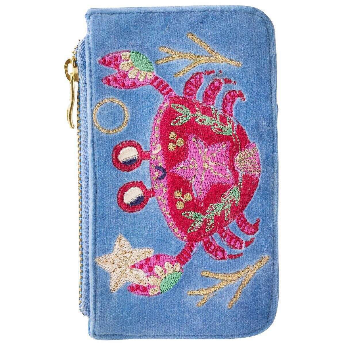 Powner Selon Crab Crab Velvet Card Holder - Cornflower Bleu