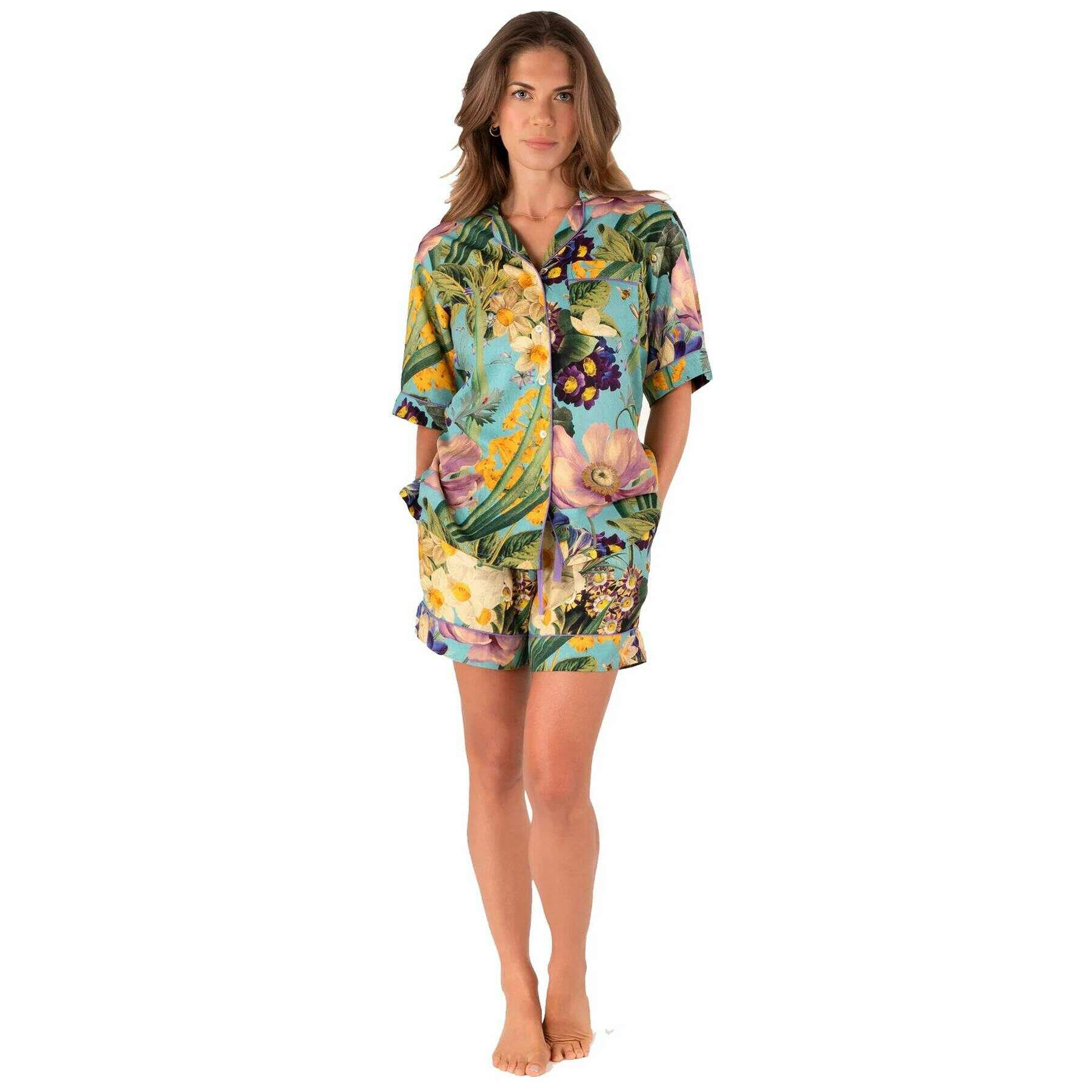 Pyjama court Powder Spring Flora - Bleu/Vert/Jaune