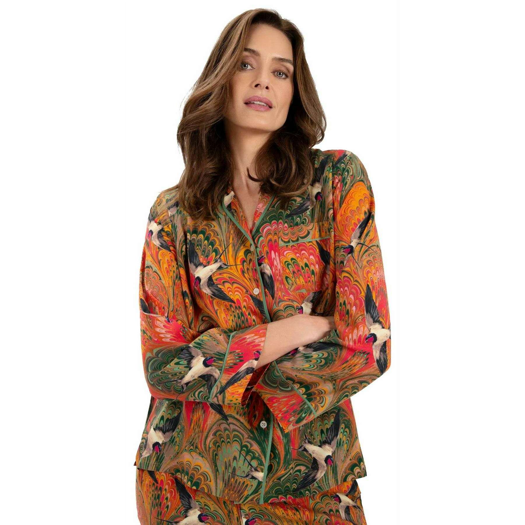 La poudre de designer vous a apporté le pyjama à 100% viscose des femmes en utilisant des tons orange. De plus, les pyjamas orange sont conçus dans un motif unique, il est recommandé de se laver à la machine à 30 degrés pour garder ces pyjamas en bon état. Tous les pyjamas sont livrés avec des étiquettes de poudre. Le pyjamas à hirondelles marbré en poudre - Orange présente une combinaison de deux impressions avec des hirondelles réparties pour un design psychédélique vibrant et amusant, parfait pour des soirées confortables. Ces pyjamas accrocheurs avec un pantalon long et un haut à manches longues créent un look féminin audacieux que vous êtes sûr d'aimer et que vous voudrez porter tout le temps.