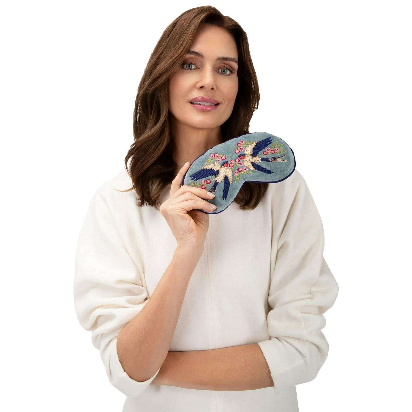 Ce masque pour la lavale à la lavale de la lavale des femmes par la poudre de marque est fabriqué à partir de velours 100% polyester et est présenté en bleu. Il mesure 9,5 cm (hauteur) x 20 cm (largeur). Tous les masques pour les yeux sont livrés avec des étiquettes de poudre. La poudre qui coule des hirondelles pour les yeux lavande - le bleu glacé rend le sommeil encore plus luxueux. La finition en velours incroyablement douce sera relaxante et confortable, et le groupe élastique le sécurisera parfaitement à votre tête pour une usure paisible tandis que l'arôme de lavande des graines de lavande interne vous enverra. Le motif a été habilement brodé avec des détails époustouflants, ce qui en fait un accessoire que vous voudrez montrer.