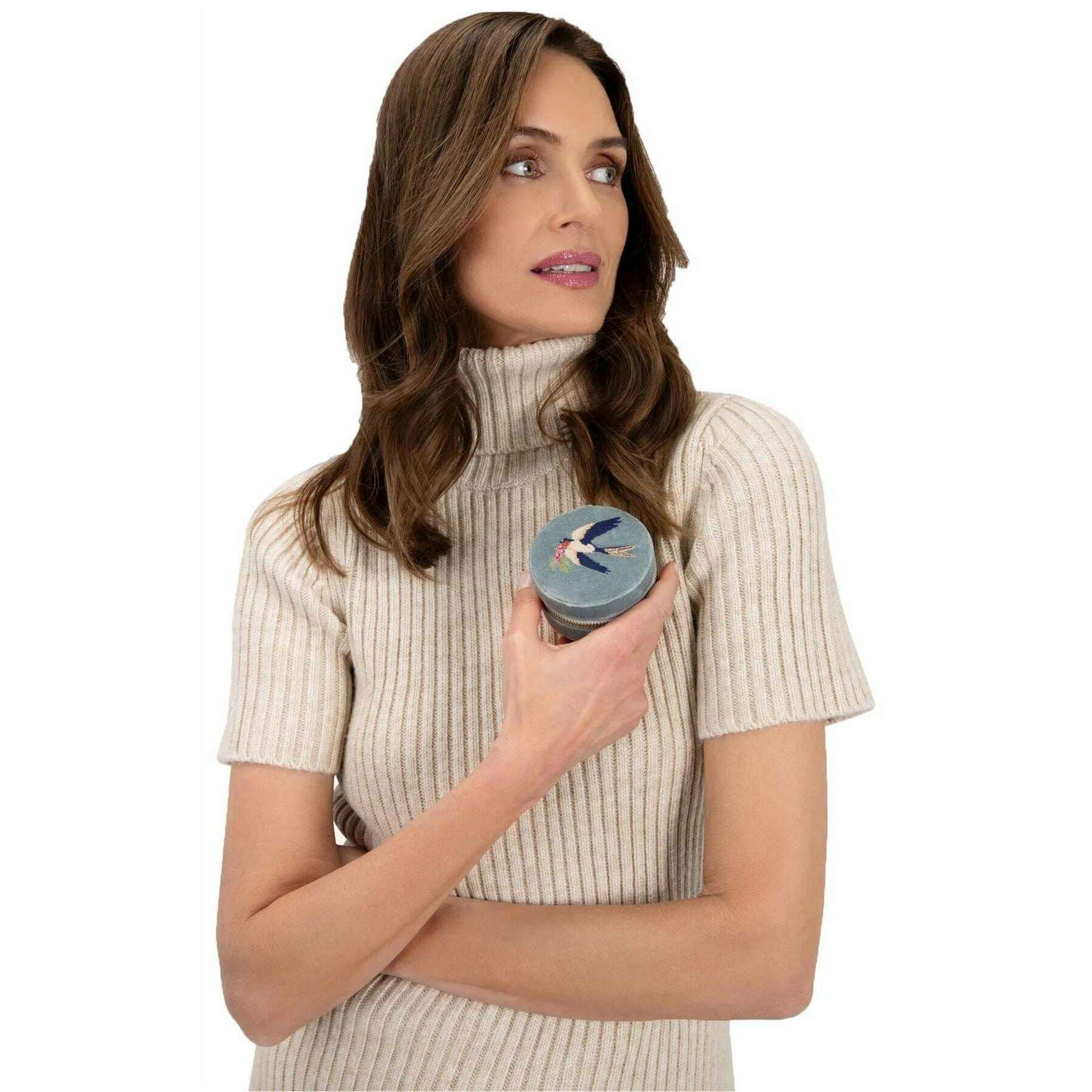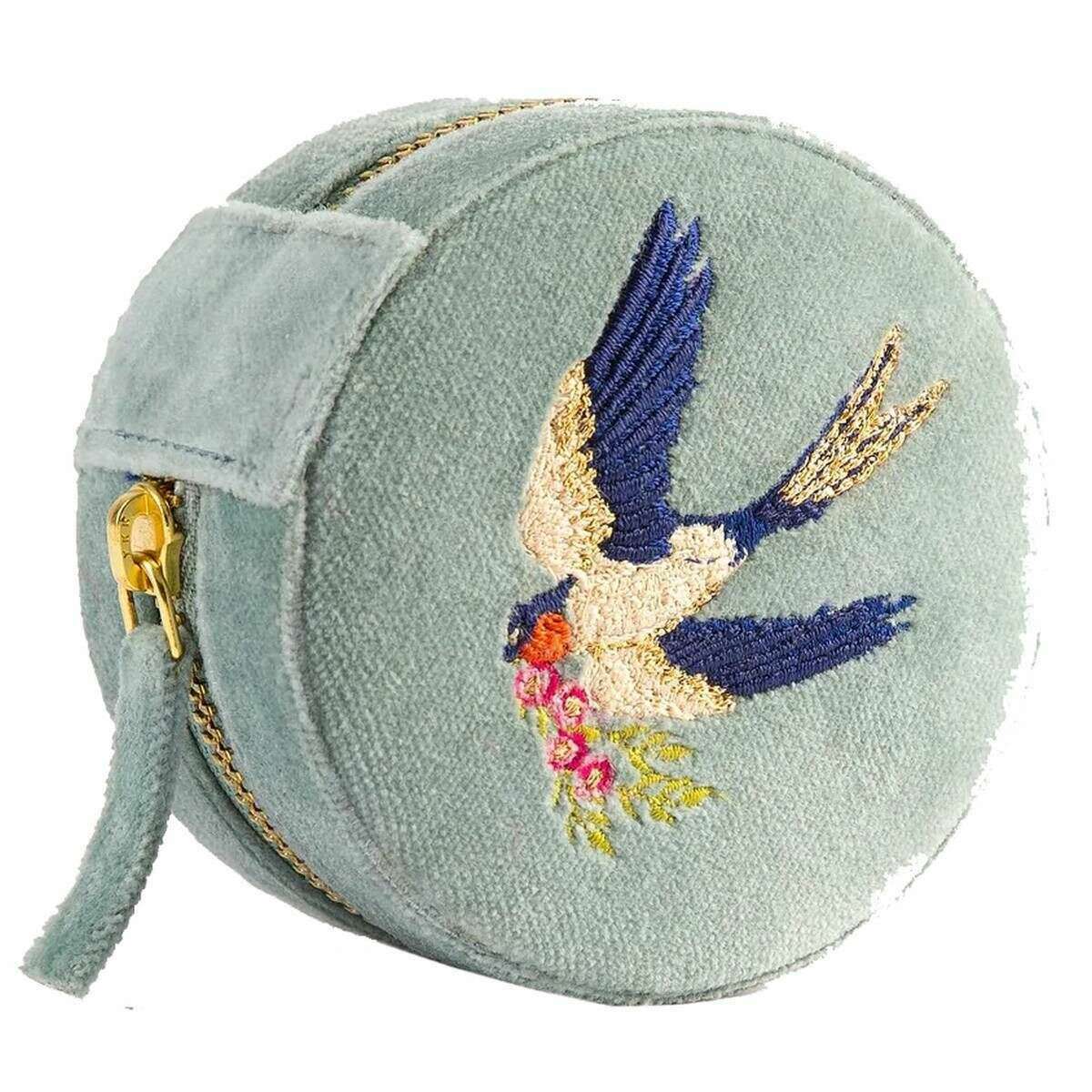 Poudle Swooping Awallows Round Velvet Jewelry Box - Bleu glacée