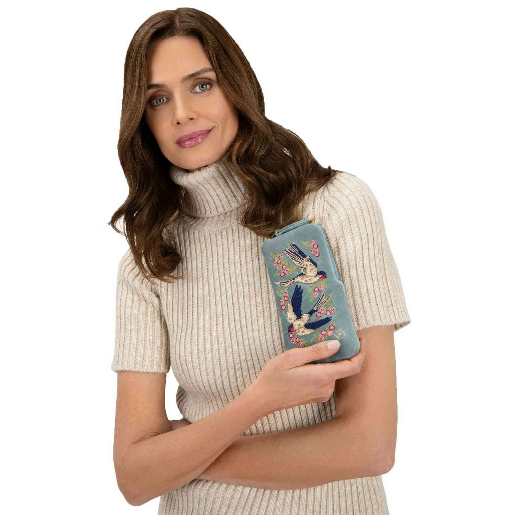 Présentation de cette poche de lunettes de soleil en velours à avaler en poudre, il est fabriqué à partir de velours 100% polyester dans une couleur bleu glacée. Il mesure 20 cm (hauteur) x 10 cm (largeur). Tous les étuis accessoires sont complets avec des étiquettes de poudre. La poudre qui coule la poudre Swallows Velvet Sunglasses Smagche - Le bleu de glace acquittera votre jeu de lunettes de soleil, les gardant en sécurité et protégés avec style. La conception brodée à la main apportera une touche de plaisir à votre quotidien. En plus beau, le design est également pratique avec une fermeture zippée simpliste mais sécurisée, vous permettant un accès facile à vos lunettes de soleil lorsque vous en avez besoin.