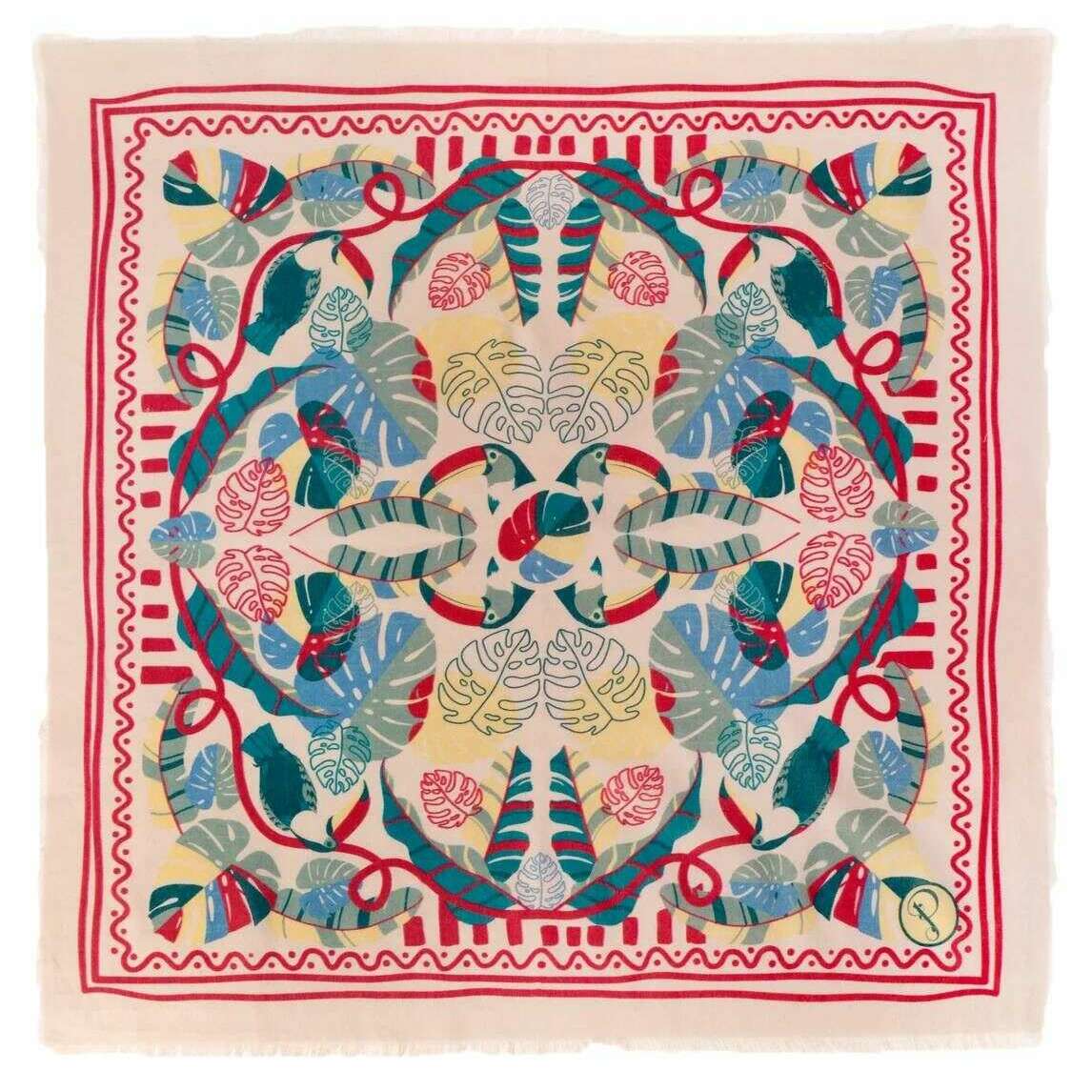 Bandana Toucan Tropical Poudre - Beige/Rouge/Bleu